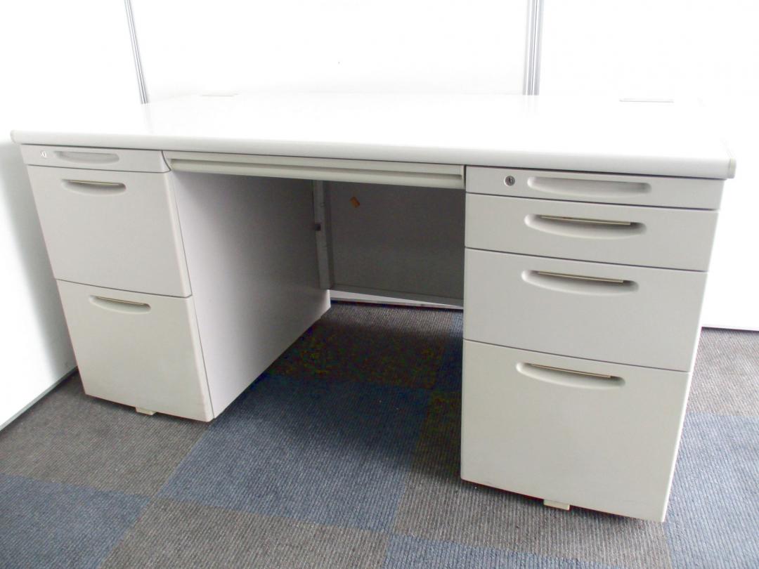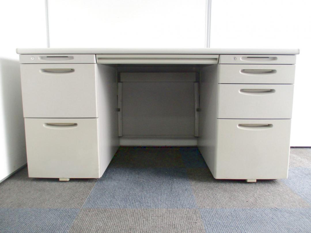 上長席・役員向けサイズ オカムラ SDデスクシステム 両袖机 定番のW1400サイズ 汚れの目立ちにくいニューグレー 鍵付き シリンダー錠