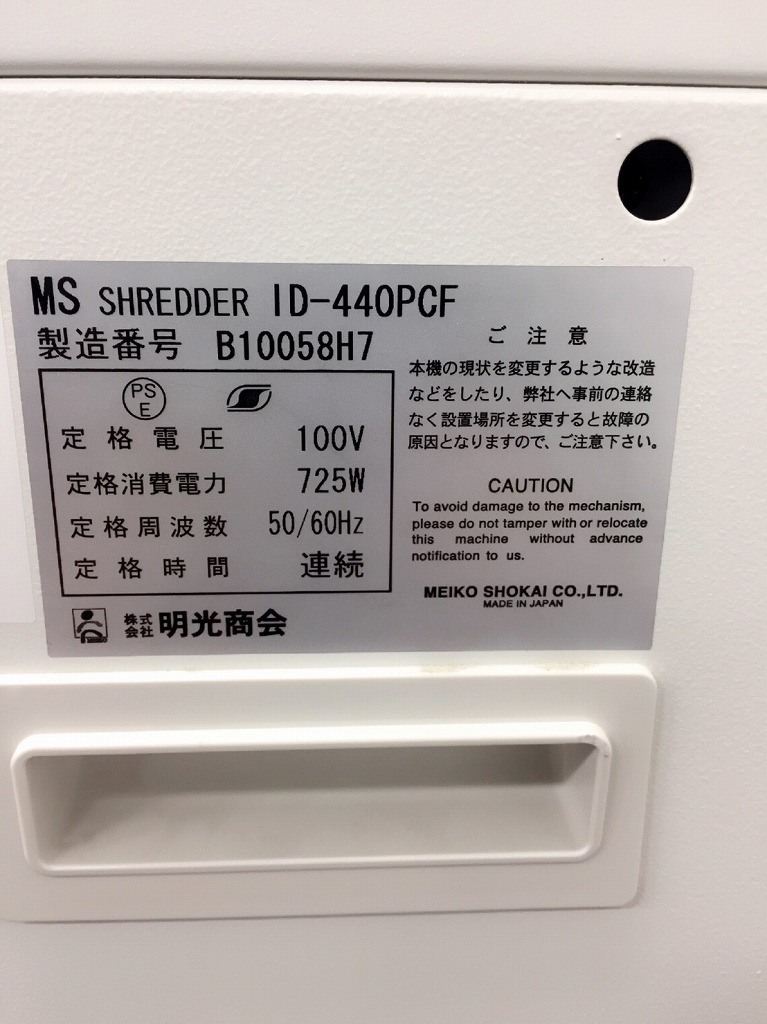 【中古】 MS-ID440PCF 明光商会 シュレッダー 192365