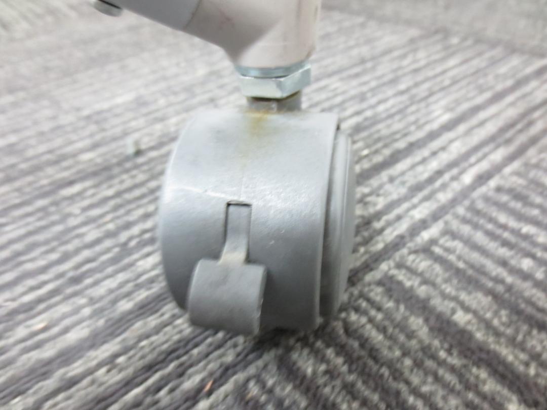 - 一部不具合あり天板歪み、アジャスター無し、キャスター使用不可ようなそのテーブルの本来の効用を果たすための機能以外の一部が使用不可な状態。(例、キャスターロッ ク機能使用不可、棚板無し等がある。)