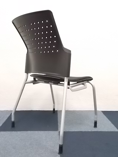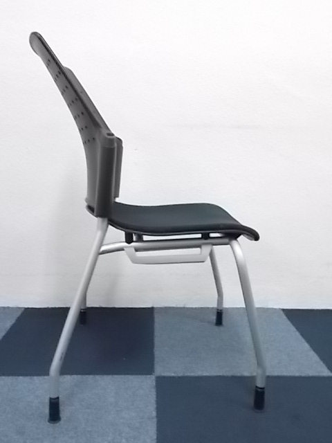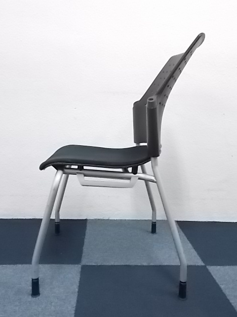 [専門業者によりクリーニング済み!!]プラス(PLUS) チェダーミーティングチェア ブラック■薄型でも背中をしっかり支え、後傾姿勢にもフィットする背もたれ!!場所をとらないコンパクト性も人気です!!- 在庫数