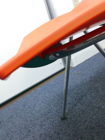 - かなり強い濃い黄ばみ・変色が商品全体にある。(例、座面・背もたれ、脚部等にある。)