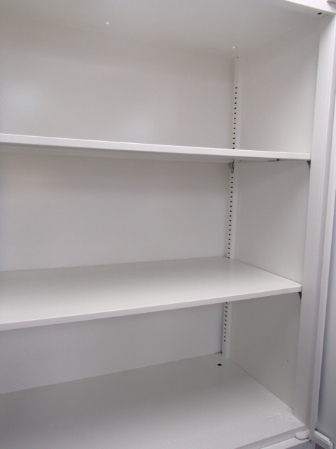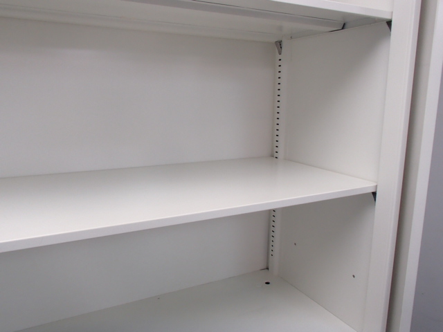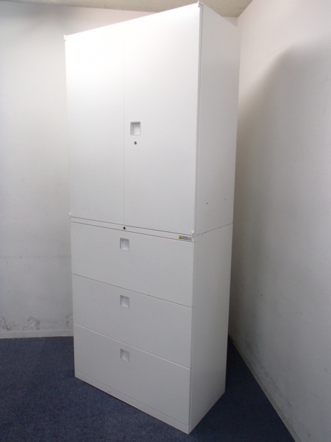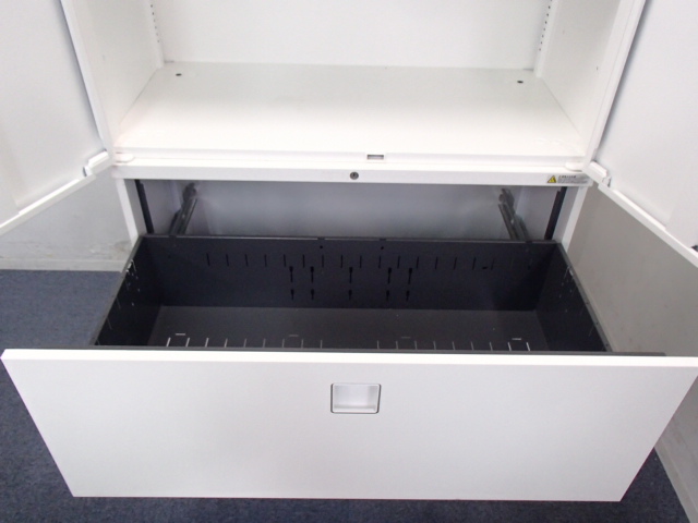スライド式の扉+引き出しタイプの便利な書庫セットが入荷!使い勝手抜群のハイキャビネットが入荷! ■オカムラ/レクトライン/ホワイト 2枚引き戸+3段ラテラルキャビネット