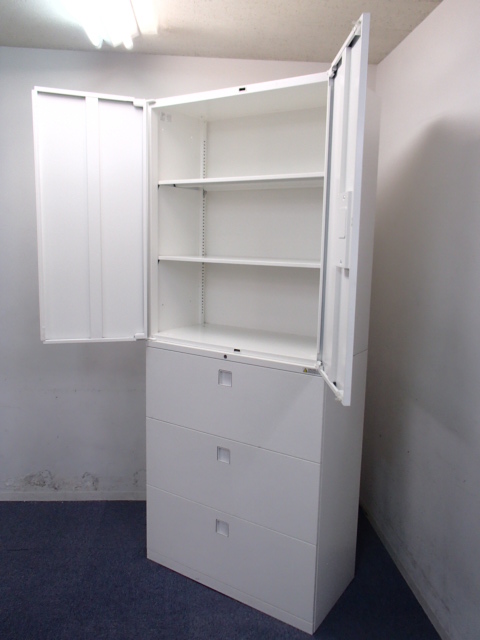 【ホワイト】|上下書庫セット|3段ラテラル+両開き|人気のレクトラインシリーズ!- 大阪・堺店