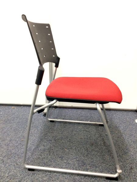 【2脚1セット】邪魔にならないスタッキングチェアー イトーキ マノスシリーズ レッド色- 名古屋本店