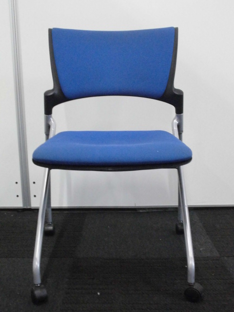 【定価6万円】【ソフトベンディングシェルが背を優しく受け止める!】■イトーキ(ITOKI) マノスチェア(MANOSS) 肘無し スタッキングチェア ミーティングチェア ■背パッド付 ■キャスター脚 ■ブルー