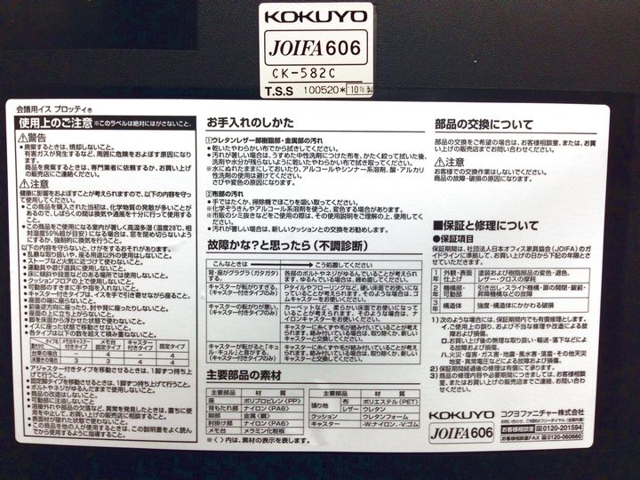 - 不具合多数そのチェアの本来の効用を果たすための機能に不具合ある。(例、オフィスチェアの上下昇降キャスター付きミーティングチェアのキャスター使用不可のような不 具合)