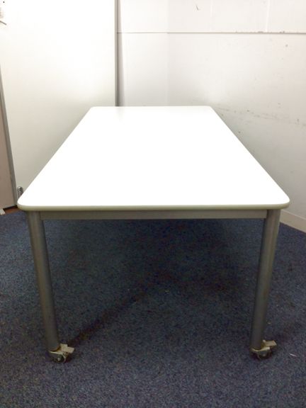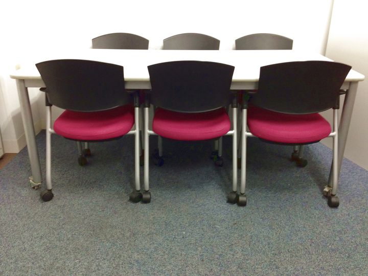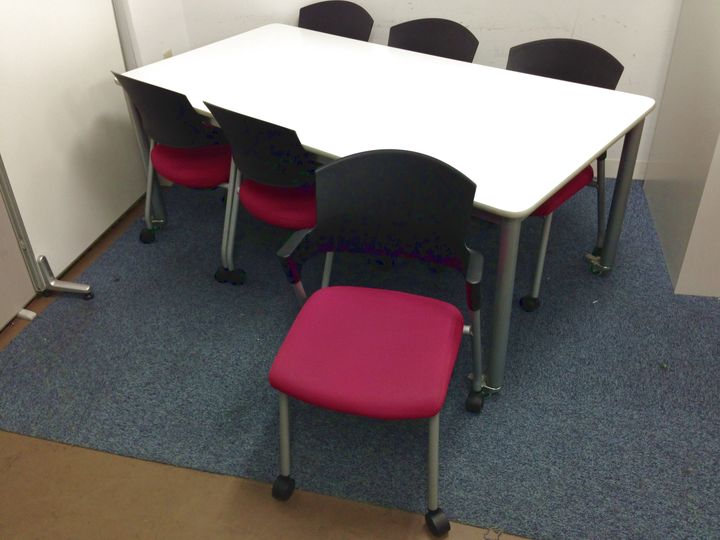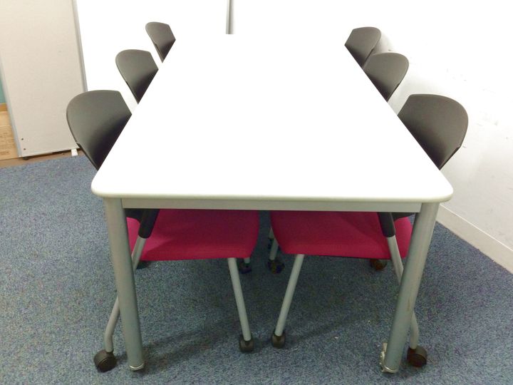 【1セット限定販売!|ホワイトの大型テーブルにオシャレなパープル色の会議チェア】- 名古屋千種店