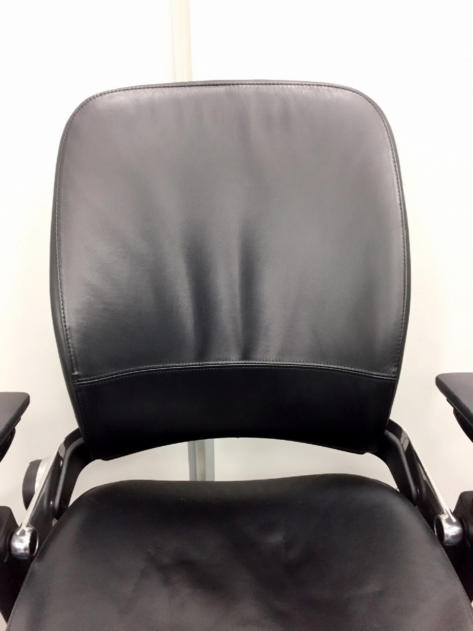 - 脊髄への負荷を軽減します。(もたれとのすき間を埋めて脊髄の自然なカーブをキープします)背もたれの上下独立した調節機構は、リープチェアだけが持つテクノロジーです。