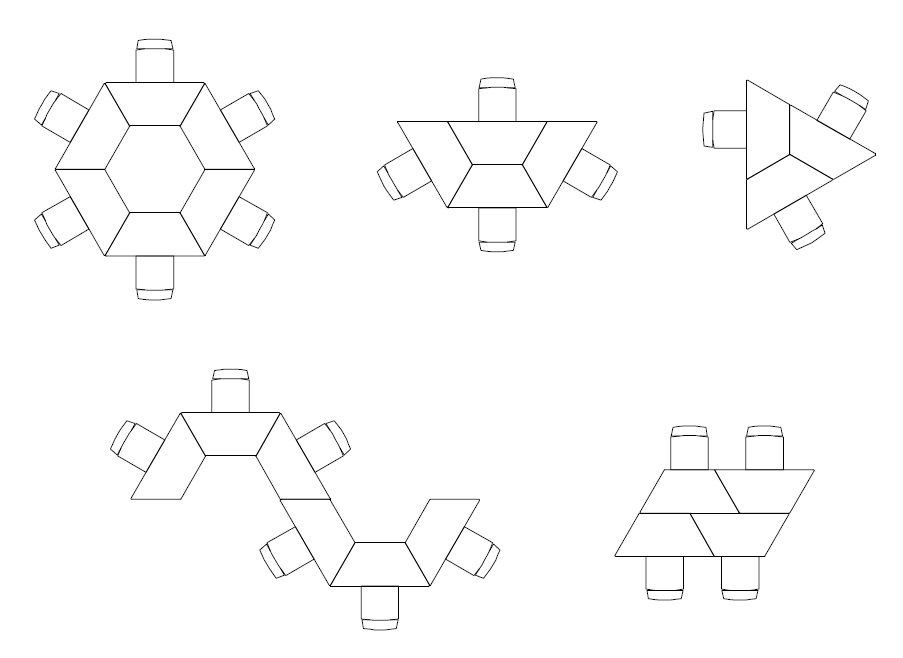 ★正方形、台形など様々な形にマッチしたレイアウトを組むことが出来るのがこのテーブルの特長