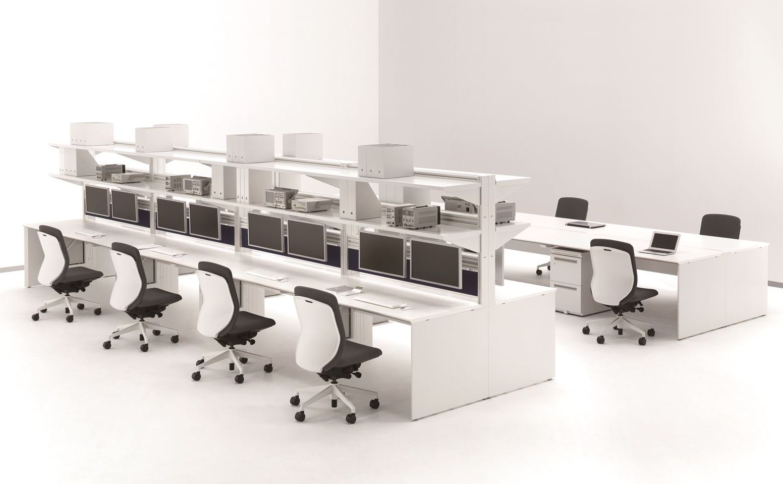 両面タイプ・片面タイプ・再度天板・エンド天板など組み合わせでミーティングや一人用の事務机など様々対応