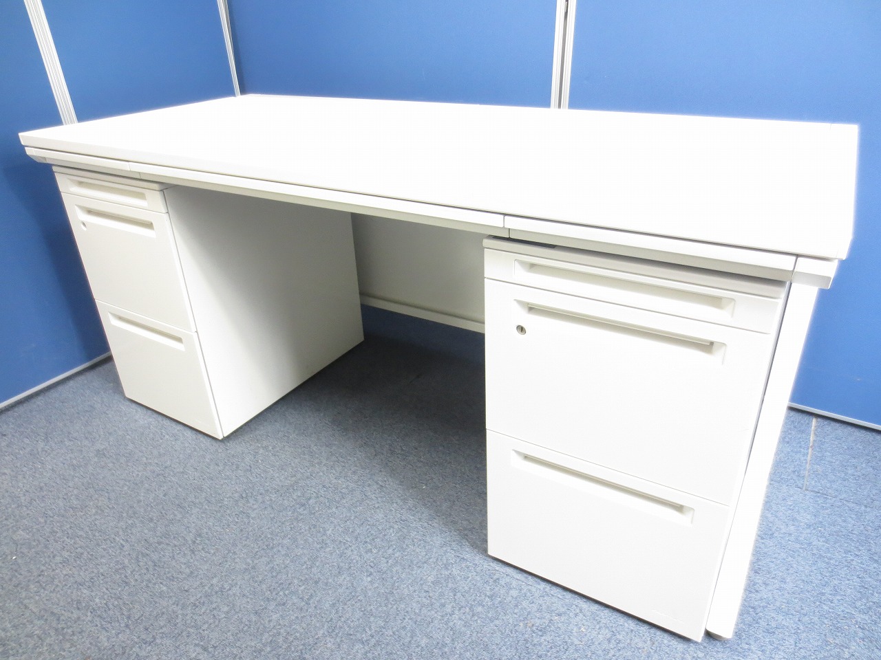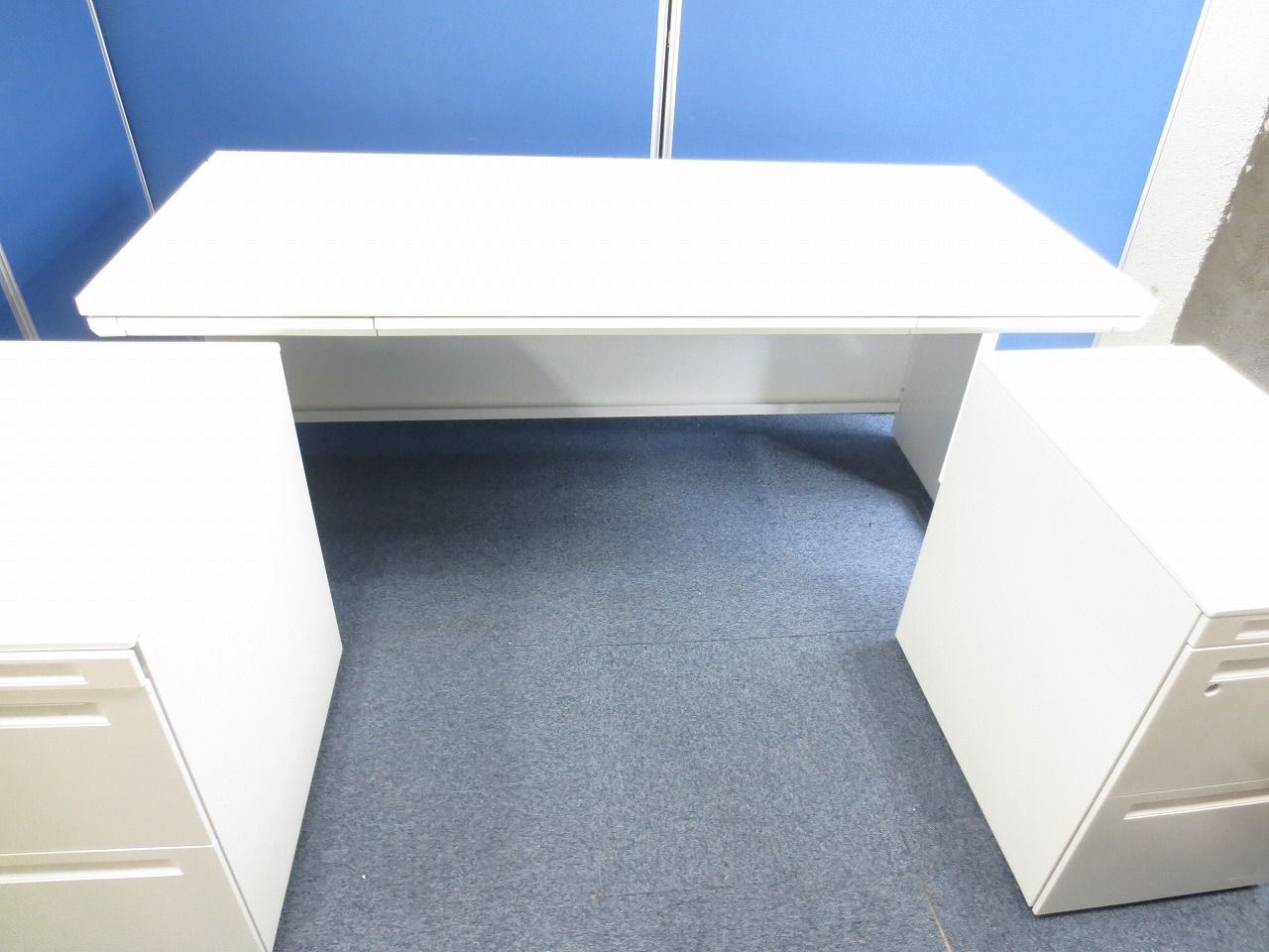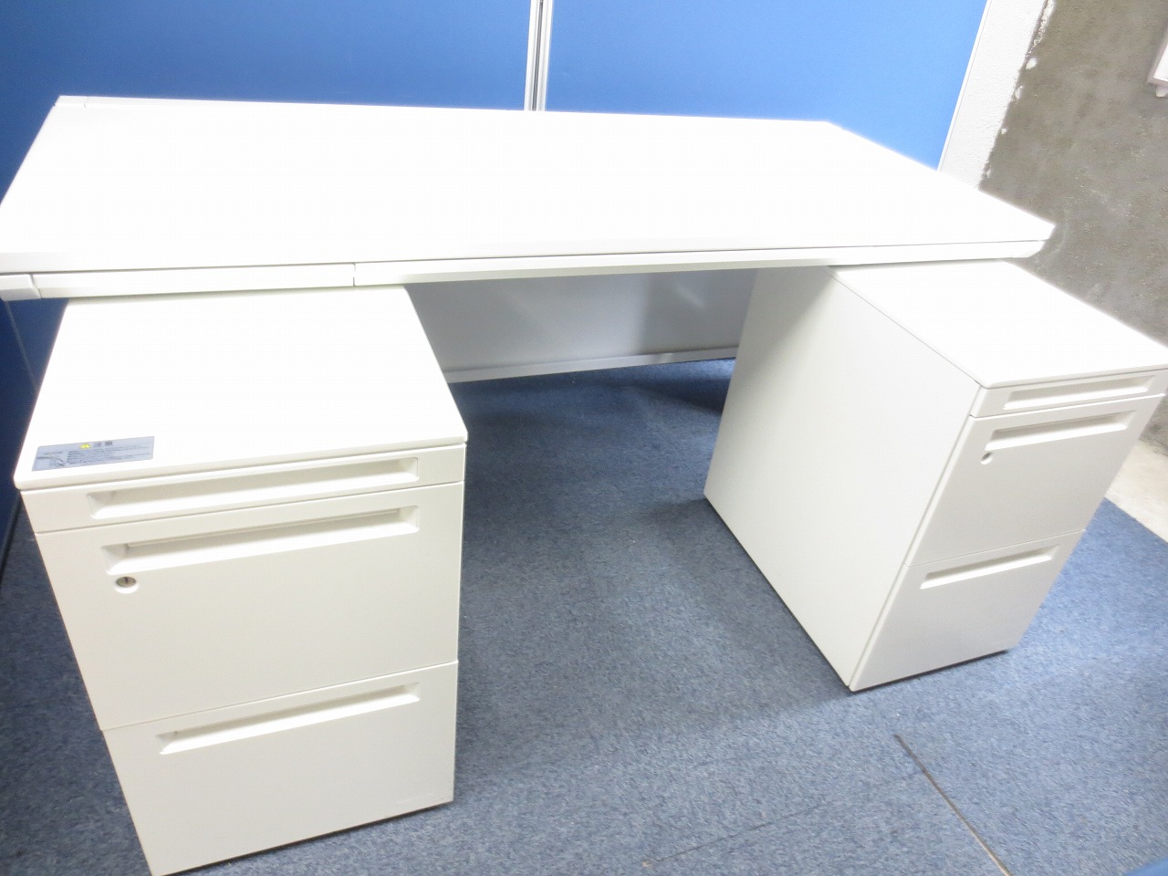【平机と3段ワゴン2台のセット!】両脇に収納可能のホワイトのデスク&ワゴン!幅広の幅1600タイプ!【社長用】【擬似両袖机】- 横浜本店