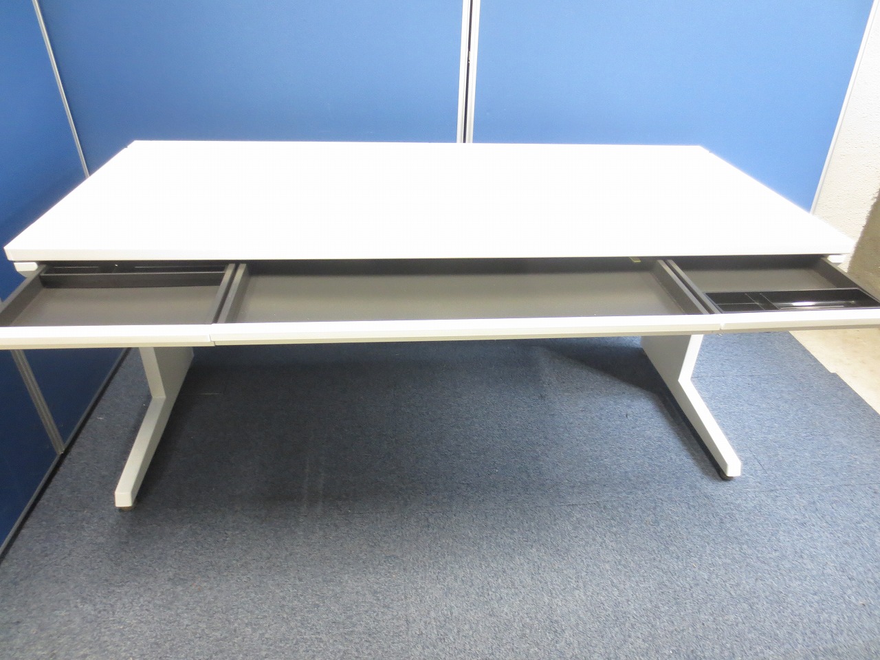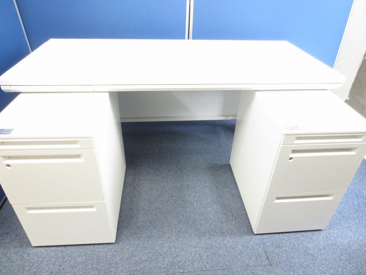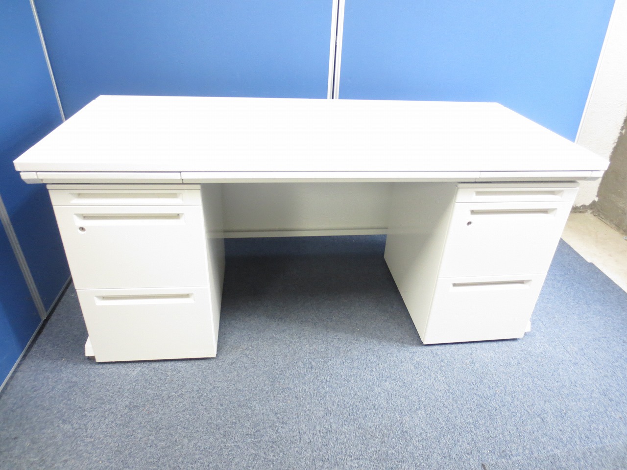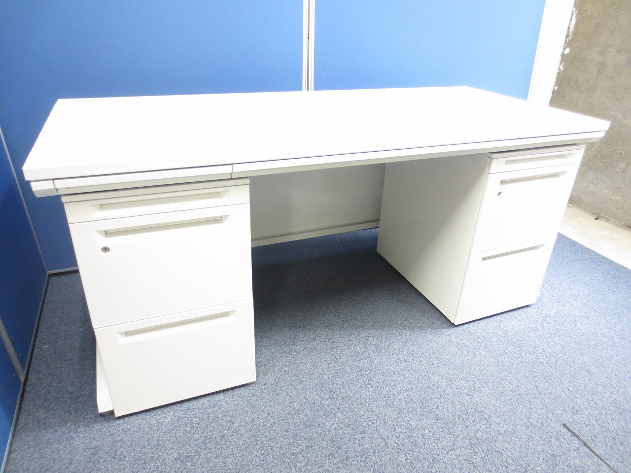 【平机と3段ワゴン2台のセット!】両脇に収納可能のホワイトのデスク&ワゴン!幅広の幅1600タイプ!【社長用】【擬似両袖机】- 横浜本店