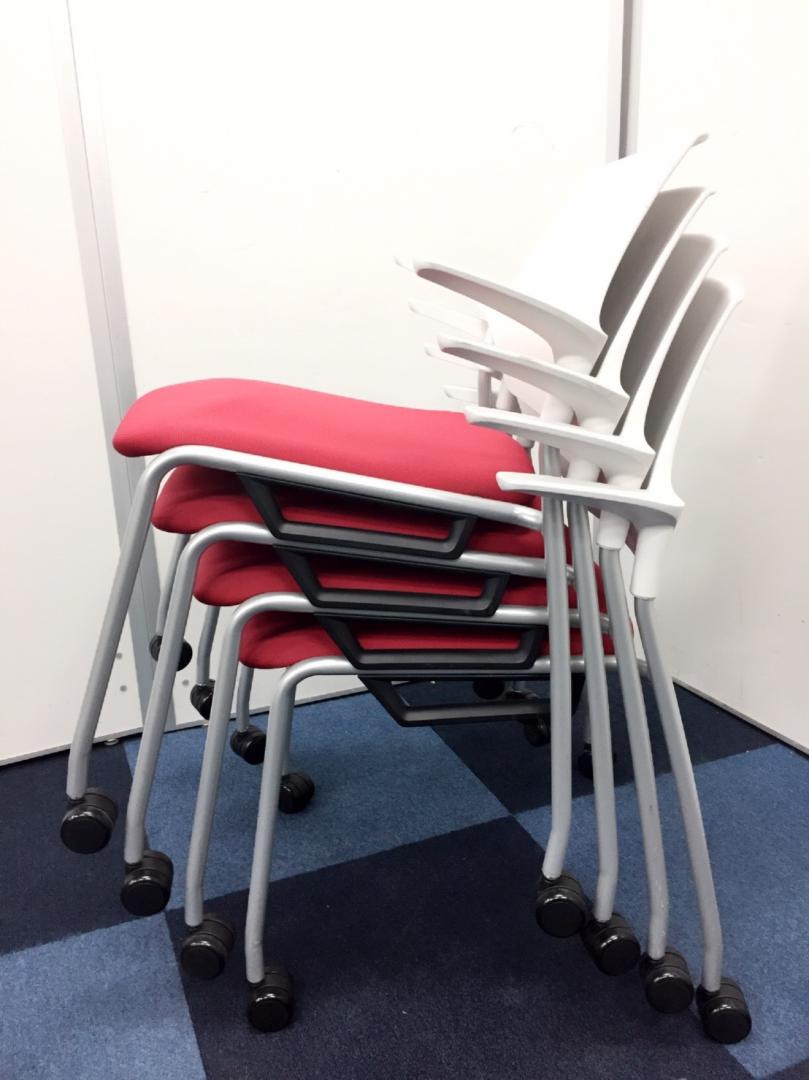【4脚セット商品】【カタログ掲載現行品】イトーキ製 ステンザ ネスティングチェア レッド【上下スタック可能なミーティングチェア】- 在庫数