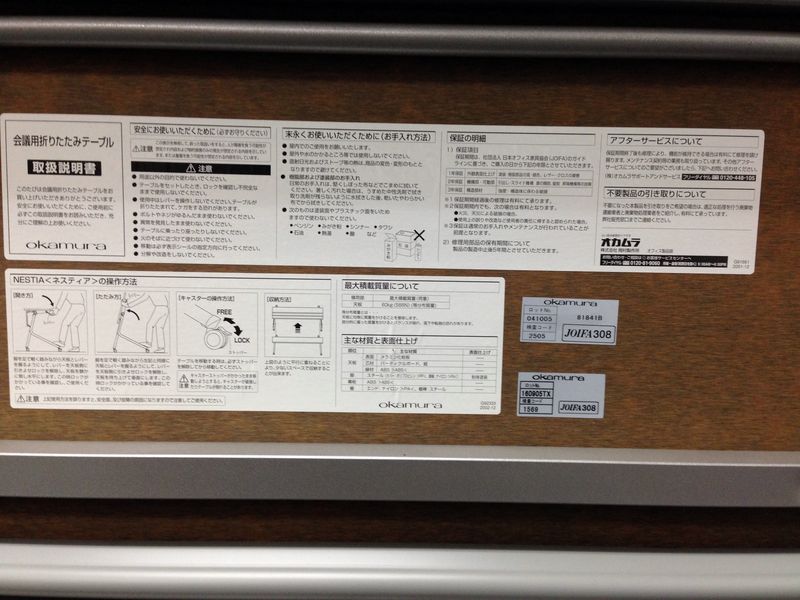 - 一部不具合あり天板歪み、アジャスター無し、キャスター使用不可ようなそのテーブルの本来の効用を果たすための機能以外の一部が使用不可な状態。(例、キャスターロッ ク機能使用不可、棚板無し等がある。)