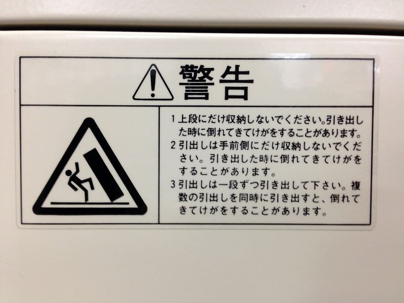 - 壊れている引出の開閉不可、施錠不可、棚板無しといったその書庫の本来の効用を果たすための機能に不具合がある(例、扉、引出の開閉が行えない。)
