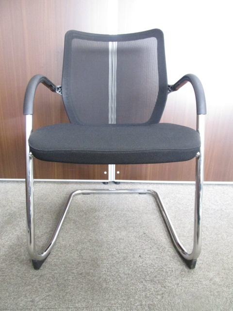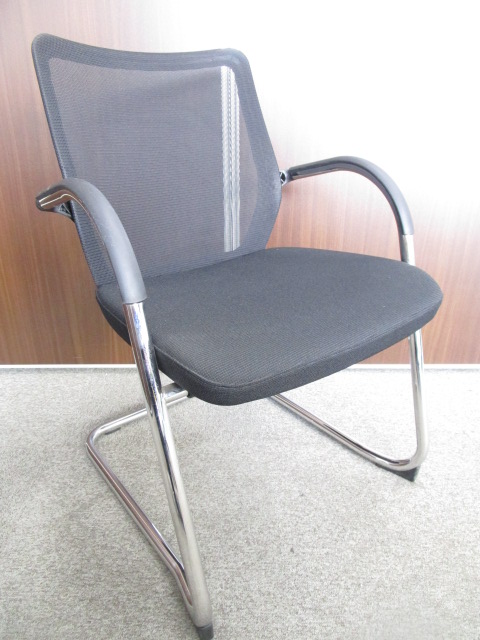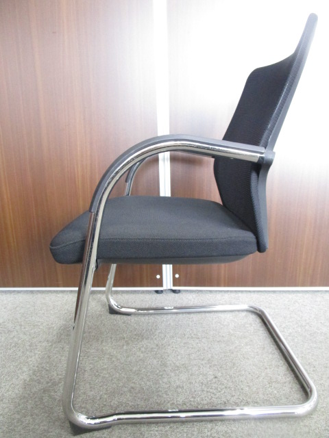岡村製作所 8148 ミーティングチェアは、珍しいカンチ脚を採用。ゆったりとしたオフィスシーティングとなっております。脚部分はスチールパイプクロームメッキ仕上げで、オールブラックカラーが重厚感あるオフィスを演出致します。