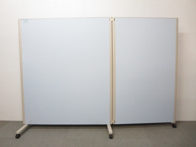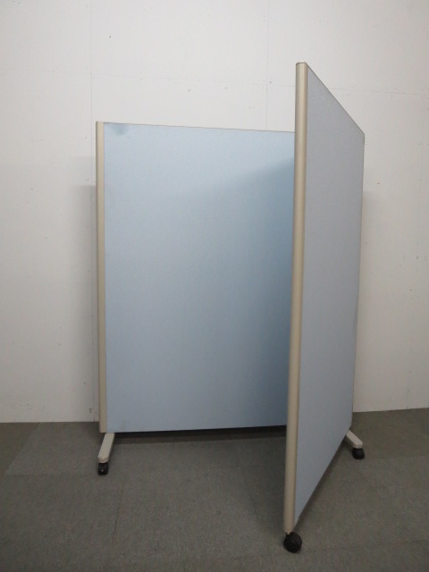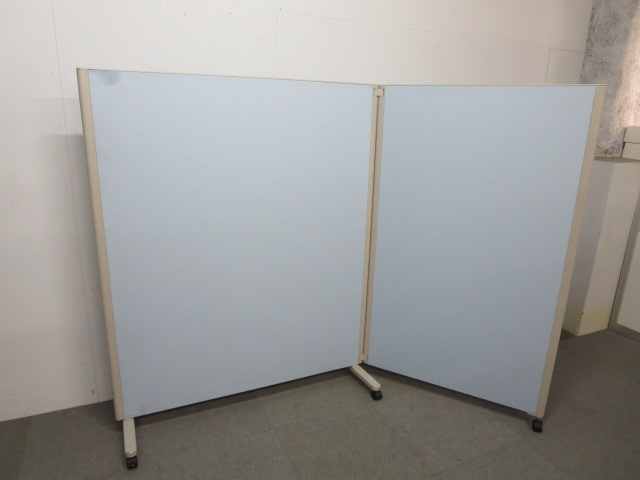 ■コクヨ製 2つ折りパーティション ブルー ■パネルスクリーン 2連衝立・折り畳み式【間仕切り・衝立】- 川崎店