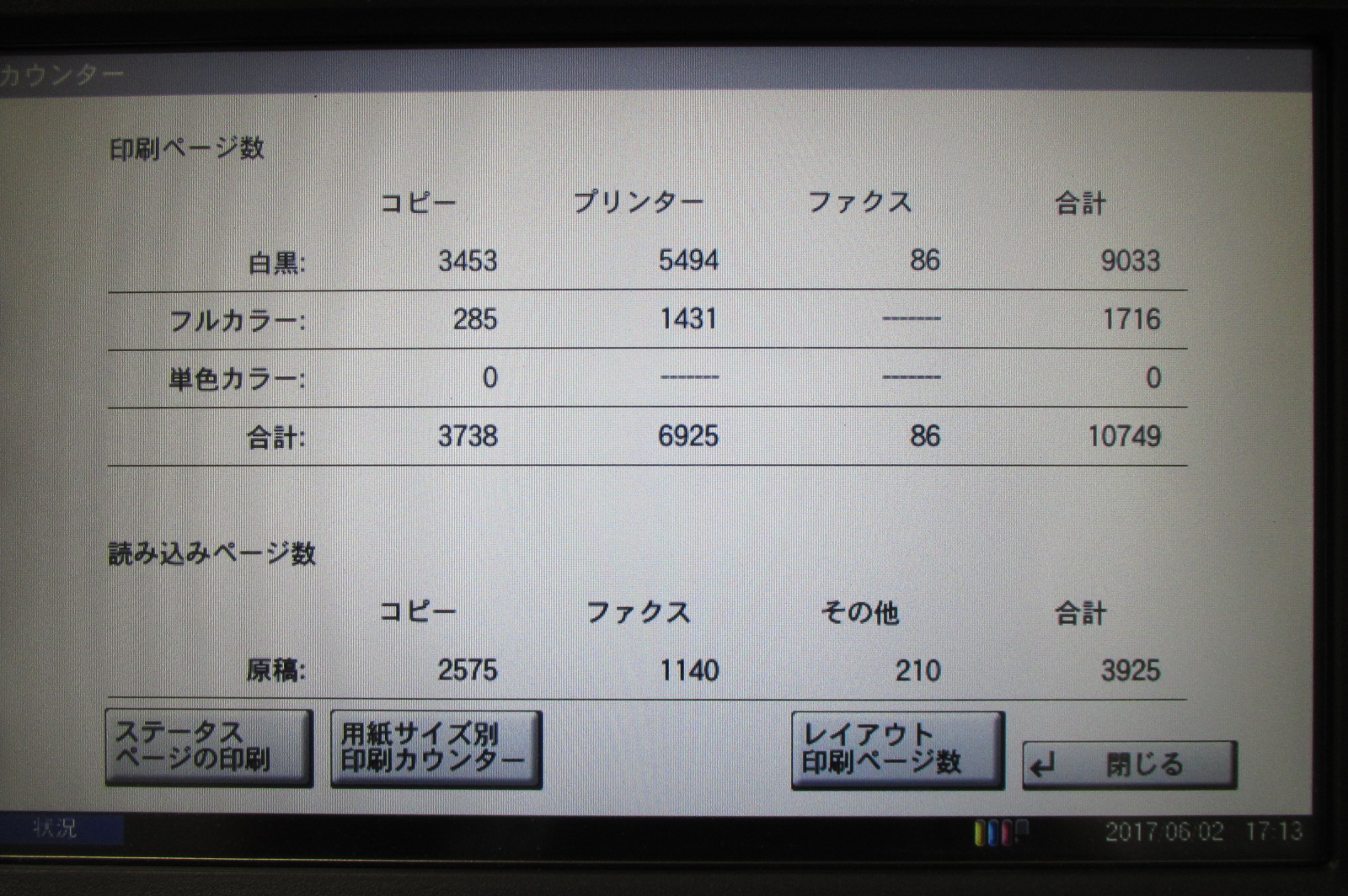 | スキャナ読取速度[A4] | 片面原稿(300dpi)(カラー)70ページ/分、(白黒)70ページ/分 |
