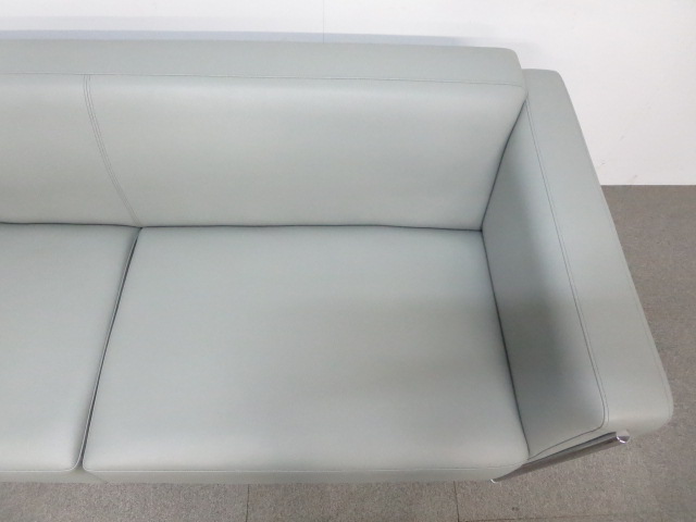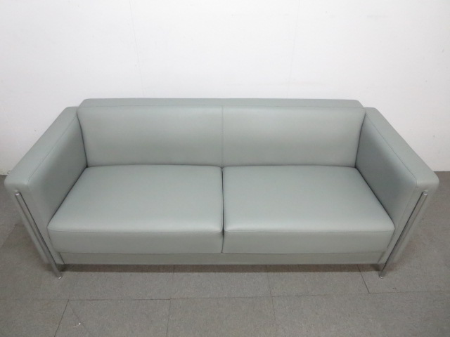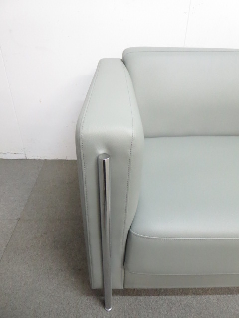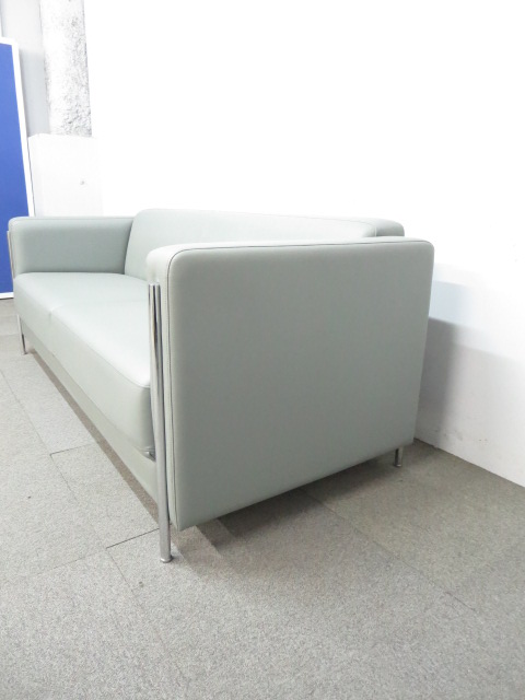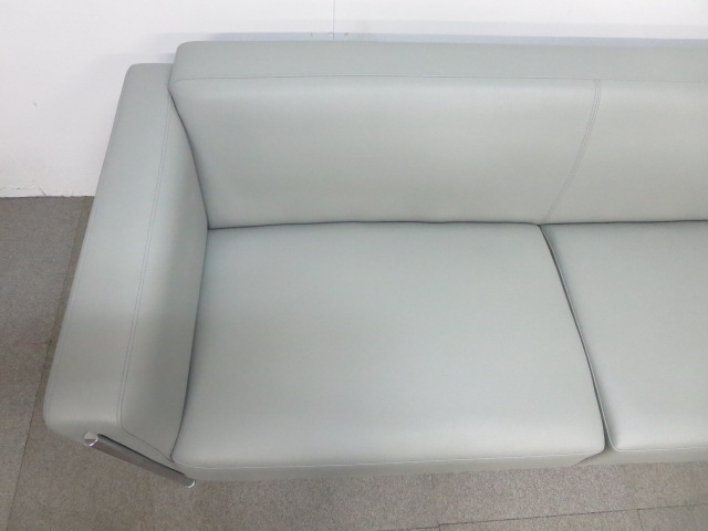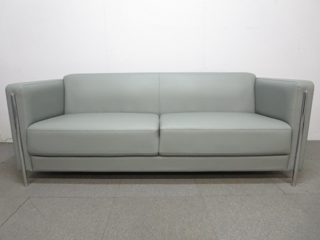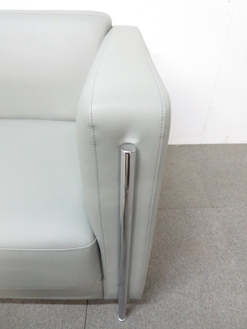 【受付用・休憩スペース用としてもオススメ!】■オリバー製 ワイドソファー ■グレー(レザー張り)- 川崎店
