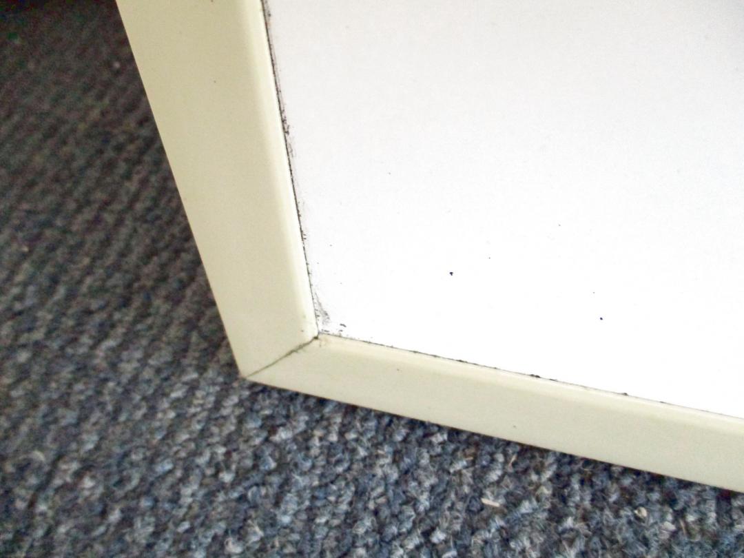 - かなり強い濃い黄ばみ・変色が商品全体にある。(例、板面、受け、サイド部分、脚部にある。)