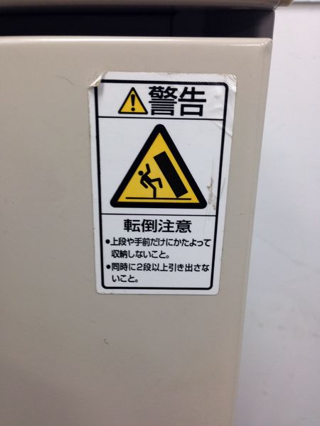 - 一部不具合ありそ引出の開閉不可、施錠不可、棚板無しといったの書庫の本来の効用を果たすための機能以外の一部が使用不可(例、扉、引出の開閉がしづらいなどがある。 )