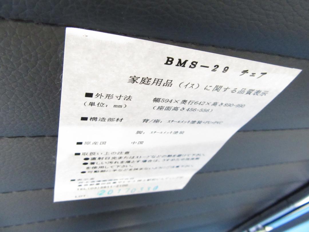 【中古】 BMSシリーズ BMS-29 井上金庫 肘無ミドルバックチェア 193831