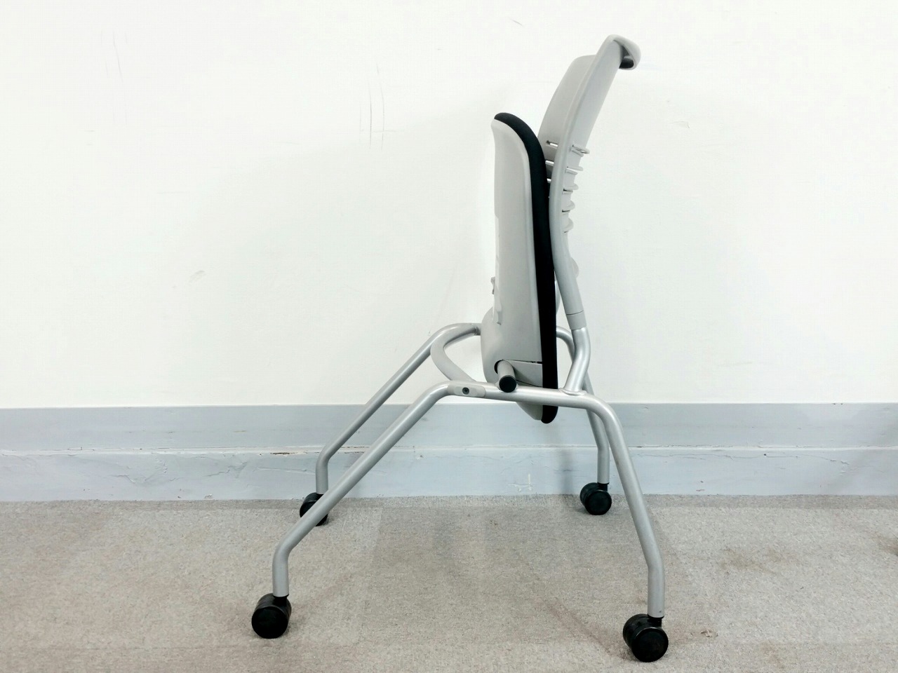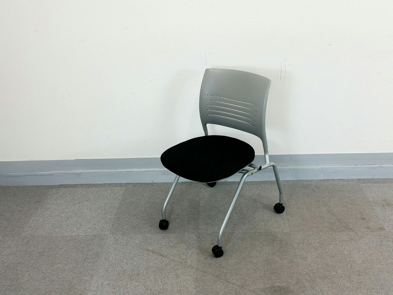 【KS】[状態良好]岡村製作所 キャスター付き ミーティング 会議用チェア[座面が跳ね上がりスーパーのカートのようにコンパクトに収納可能!]- 茨城南店