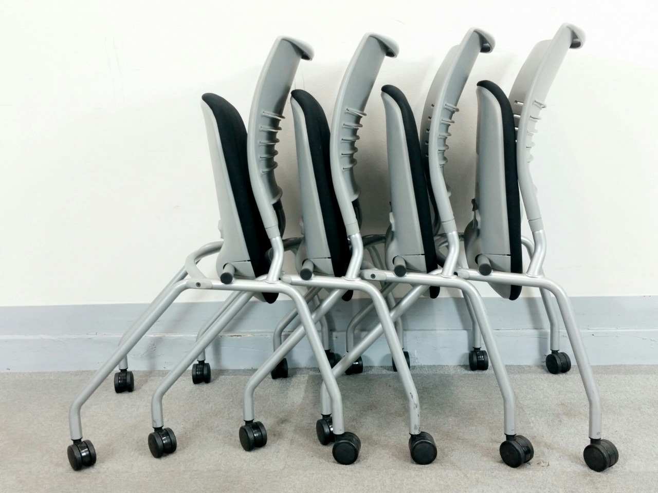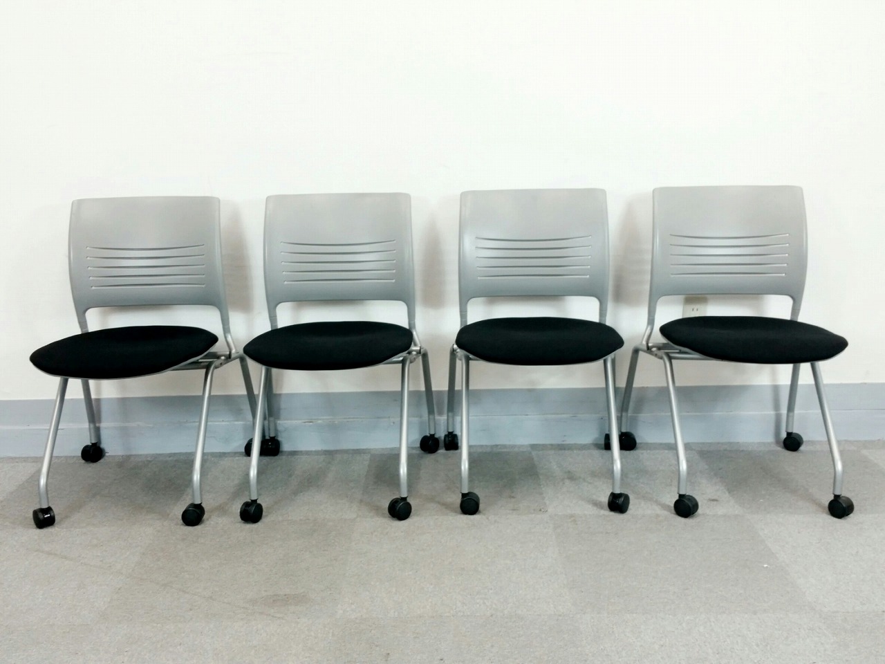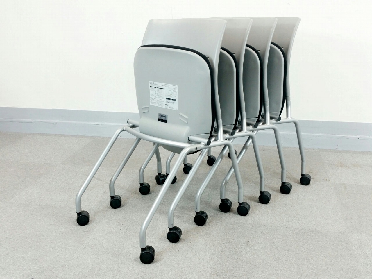 【KS】[4脚セット]岡村製作所 キャスター付き ミーティング 会議用チェア[座面が跳ね上がりスーパーのカートのようにコンパクトに収納可能!]- 茨城南店