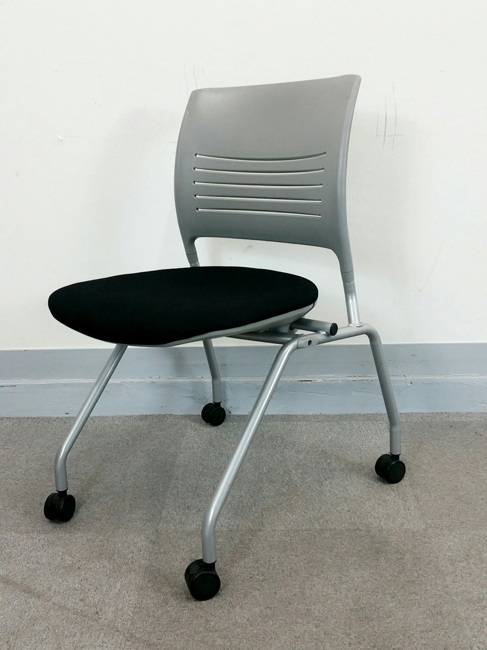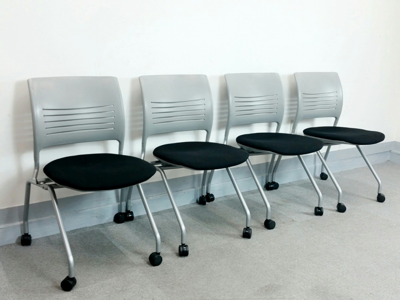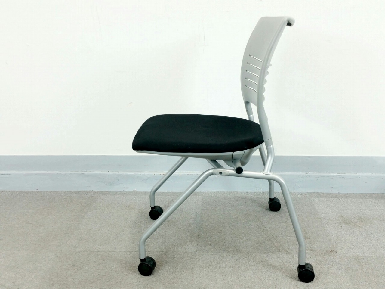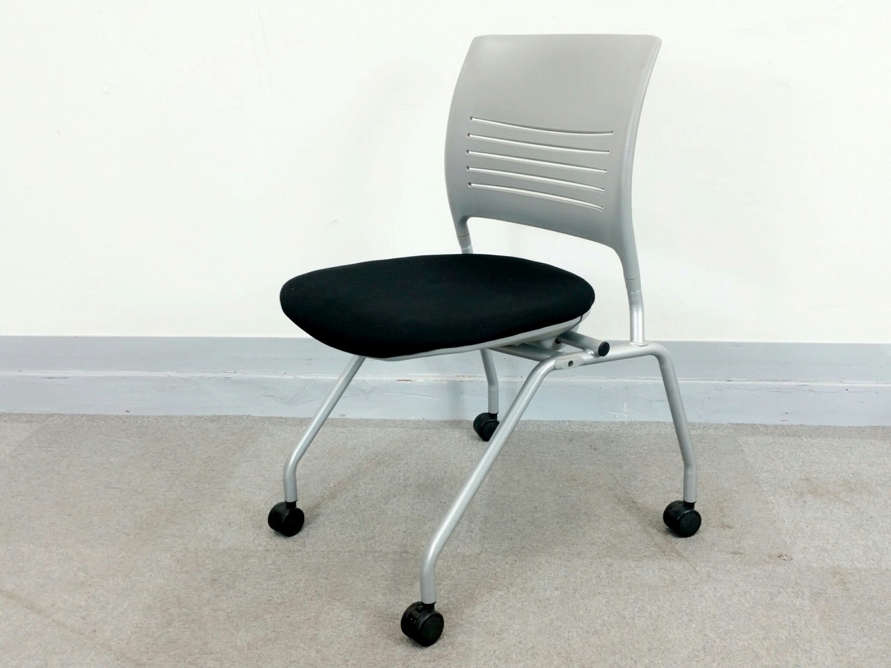 【KS】[4脚セット]岡村製作所 キャスター付き ミーティング 会議用チェア[座面が跳ね上がりスーパーのカートのようにコンパクトに収納可能!]- 茨城南店