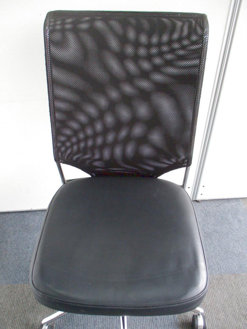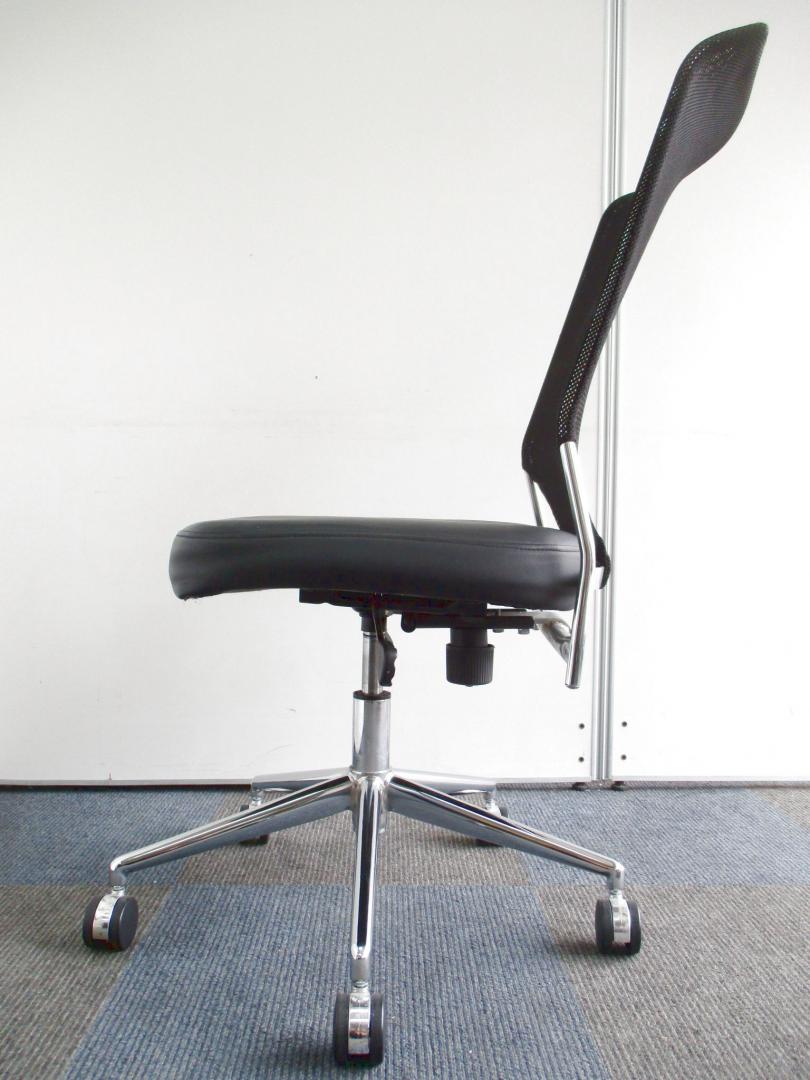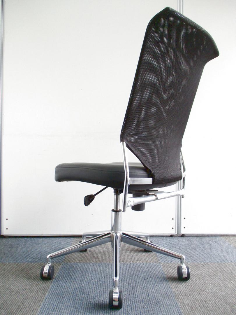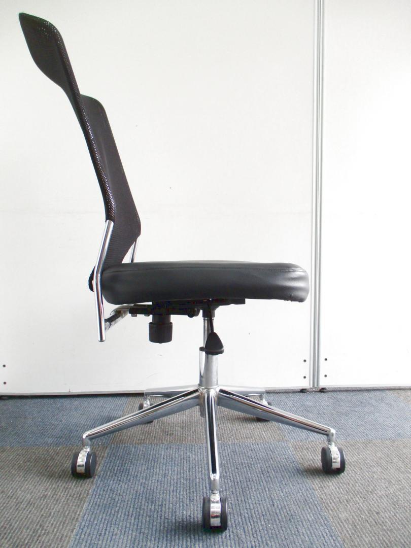 【在庫入れ替えセール品】【ミーティングルームにおすすめ!!】シルバー脚の光沢が映えます!軽量メッシュバックチェア ブラック【ハイバック】- 千葉店