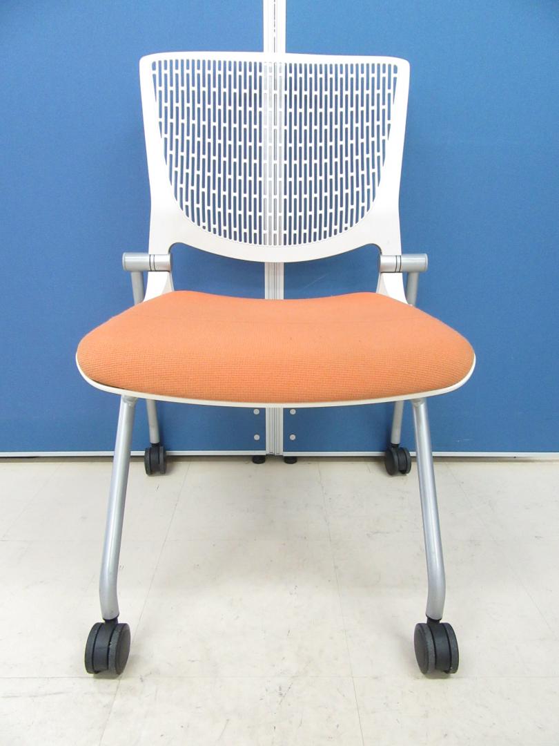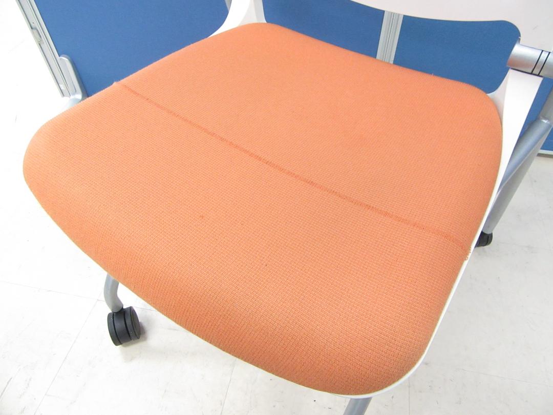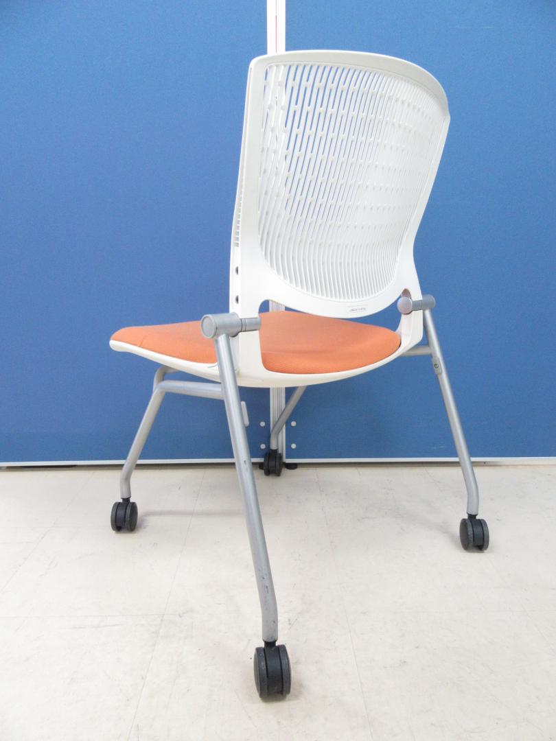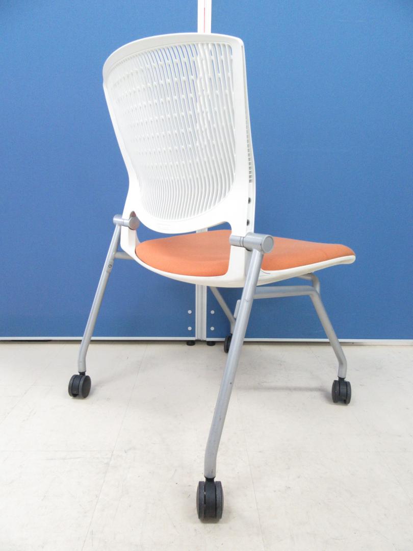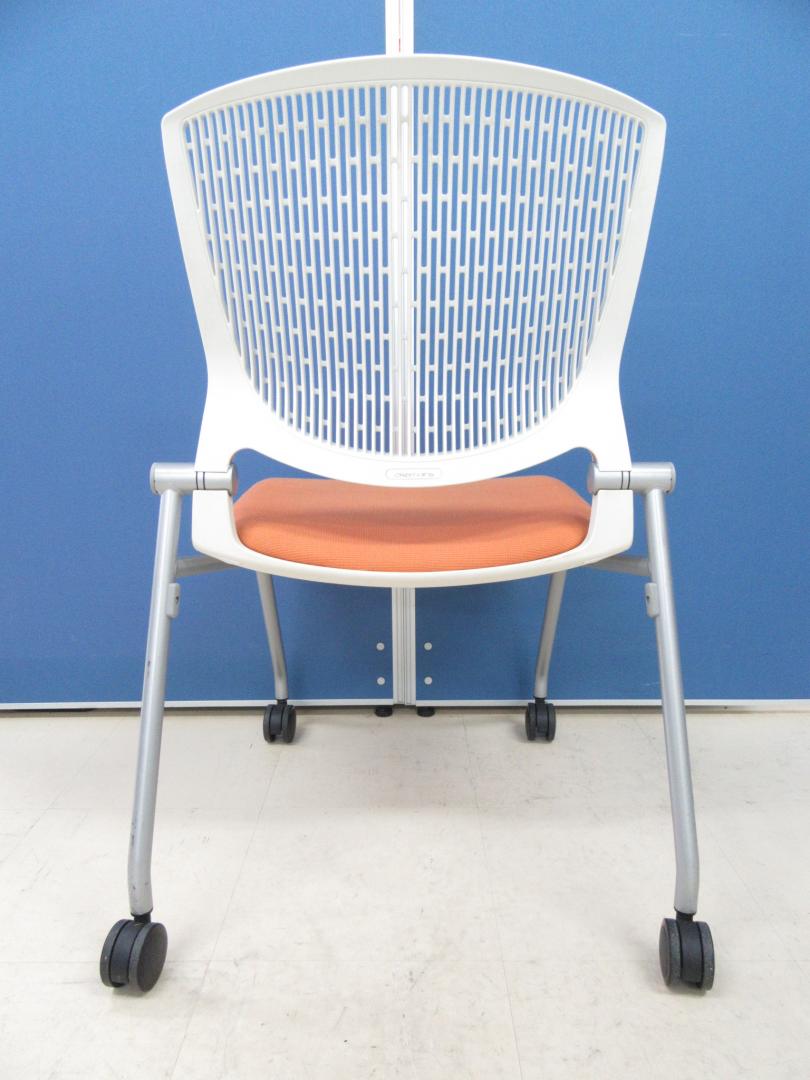 [おつとめ価格!!]岡村製作所(okamura) グラータチェア(Grata) オレンジ×ホワイトシェル■デザイン性・座り心地が良く大人気のミーティングチェアです!!シート面に伝線が見られます為、お安くなっております!![ネスタブル]サーキュラーバリューCO2削減量の算出について
