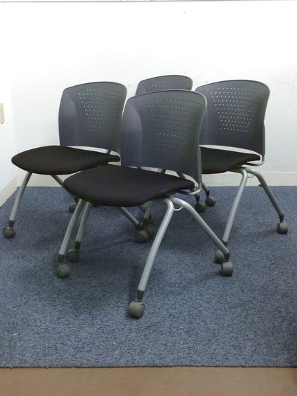 【キャスター付きのチェア|4脚セット】座面も布タイプで長時間の着座にも最適!セットでお得★- 名古屋千種店
