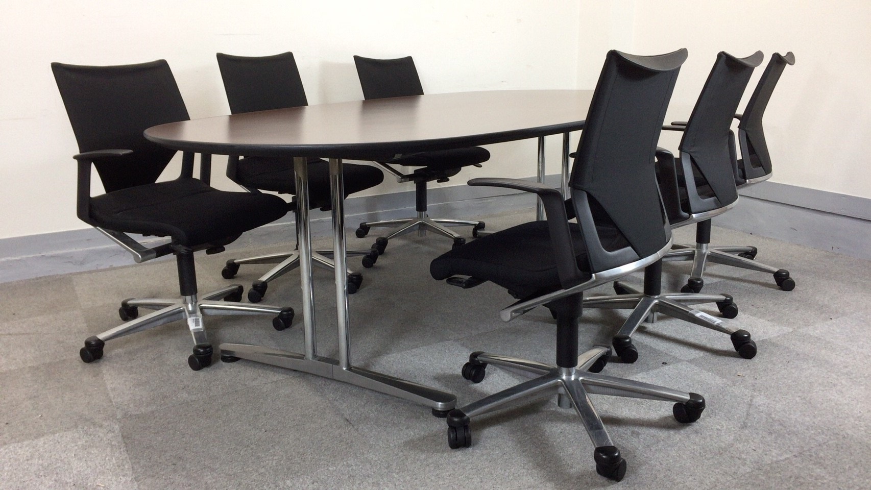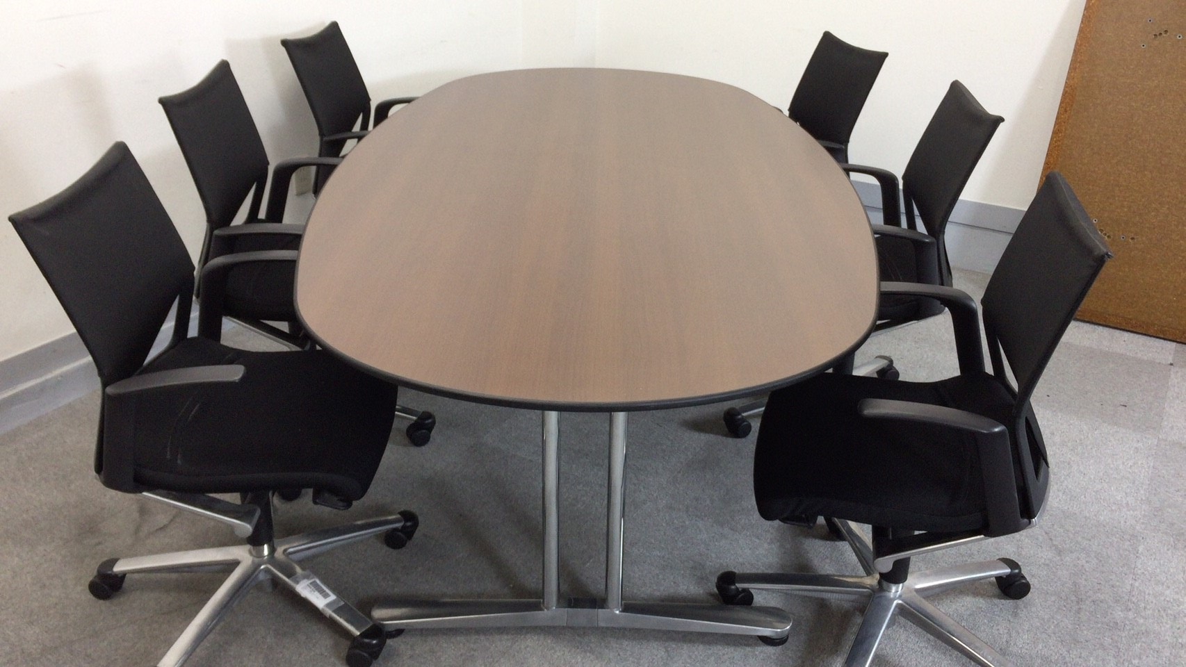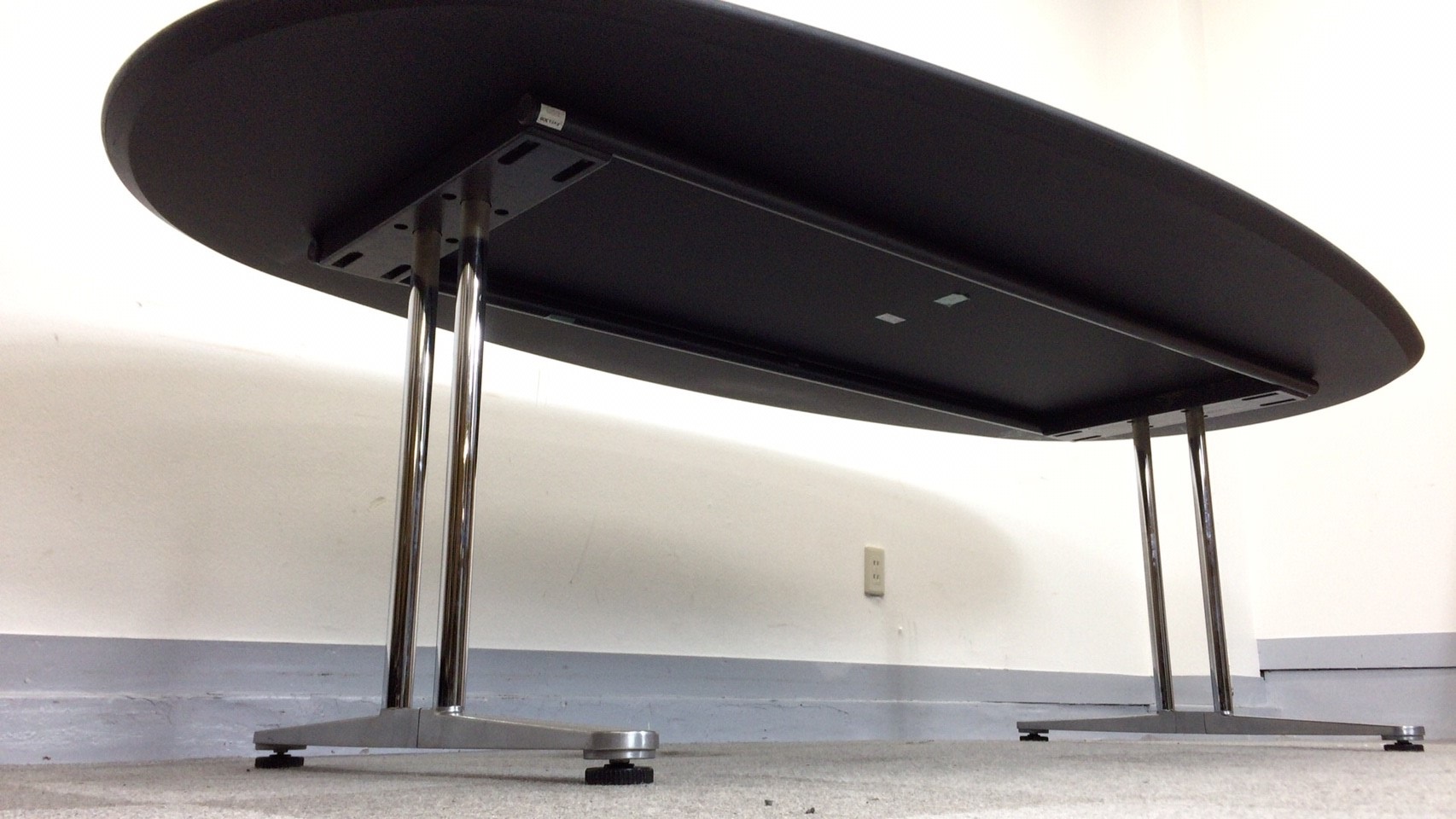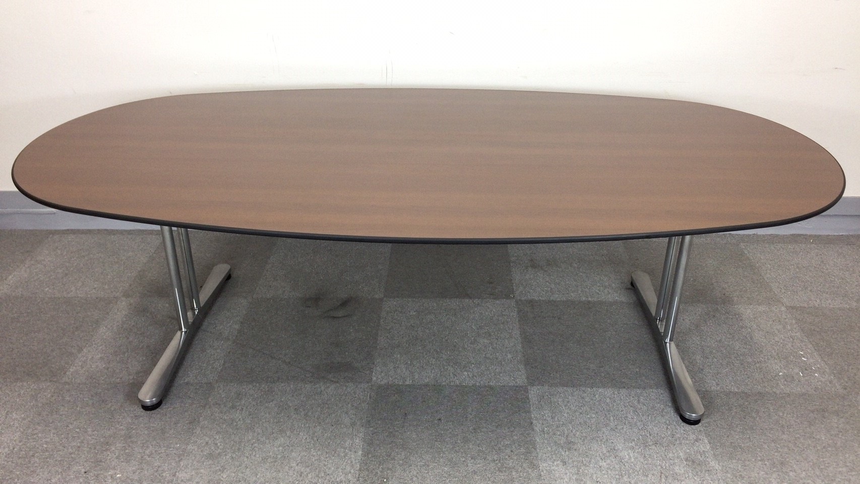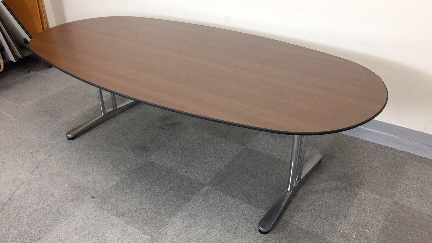 【KS】[落ち着いたブラウンカラー天板][6~8名様でのご利用に最適]ミーティングテーブル 幅2400㎜ 楕円型- 茨城南店