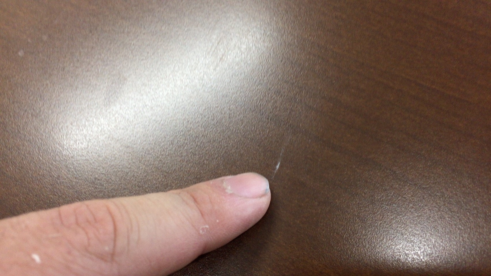- あり黄ばみ・変色が広い範囲にうっすらある、または濃い黄ばみ・変色が一部ある。(例、天板、幕板、棚板、サイド部分、脚部等にある。)