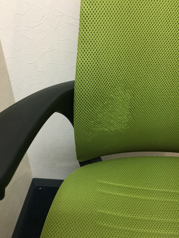 - あり黄ばみ・変色が広い範囲にうっすらある、または濃い黄ばみ・変色が一部ある。(例、座面・背もたれ、脚部等にある。)