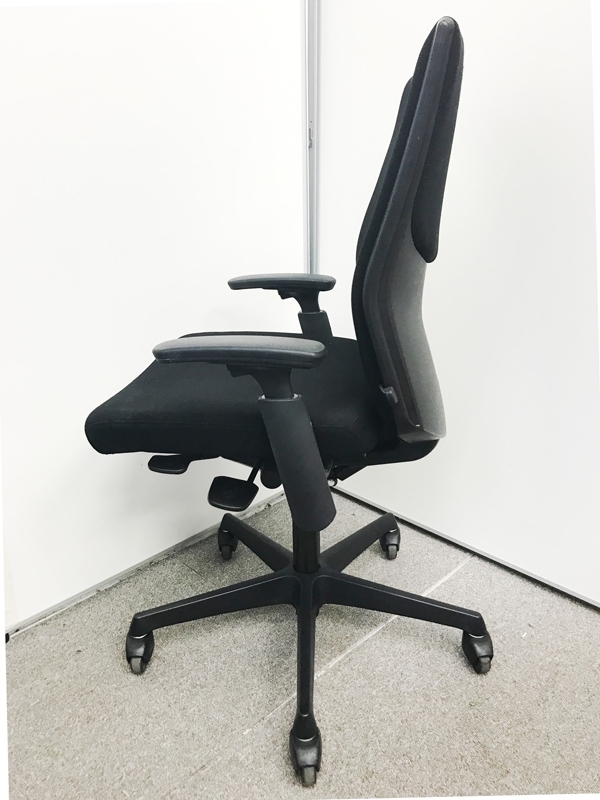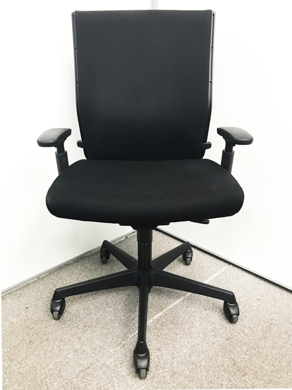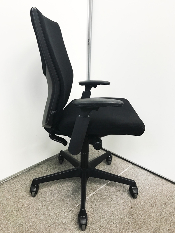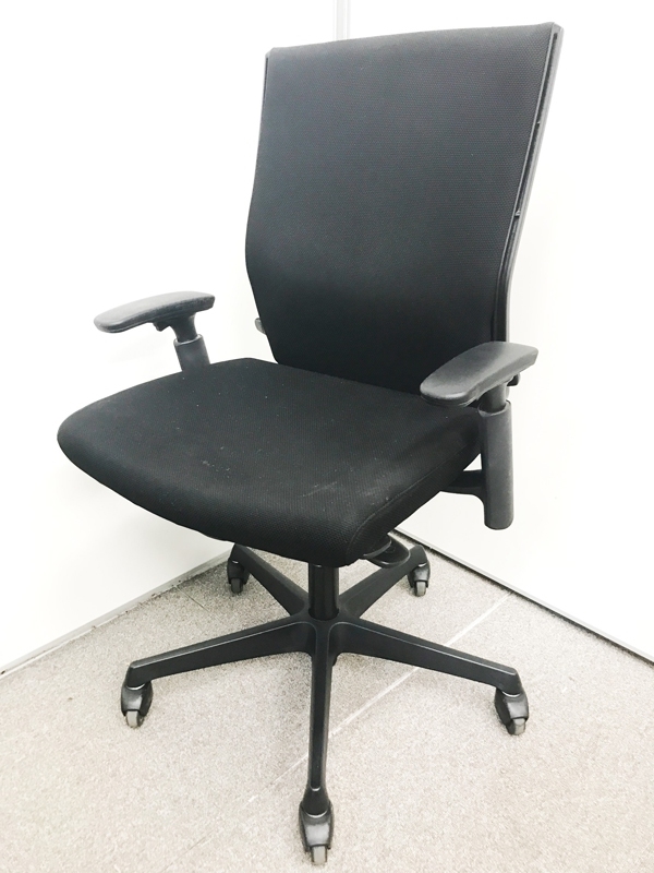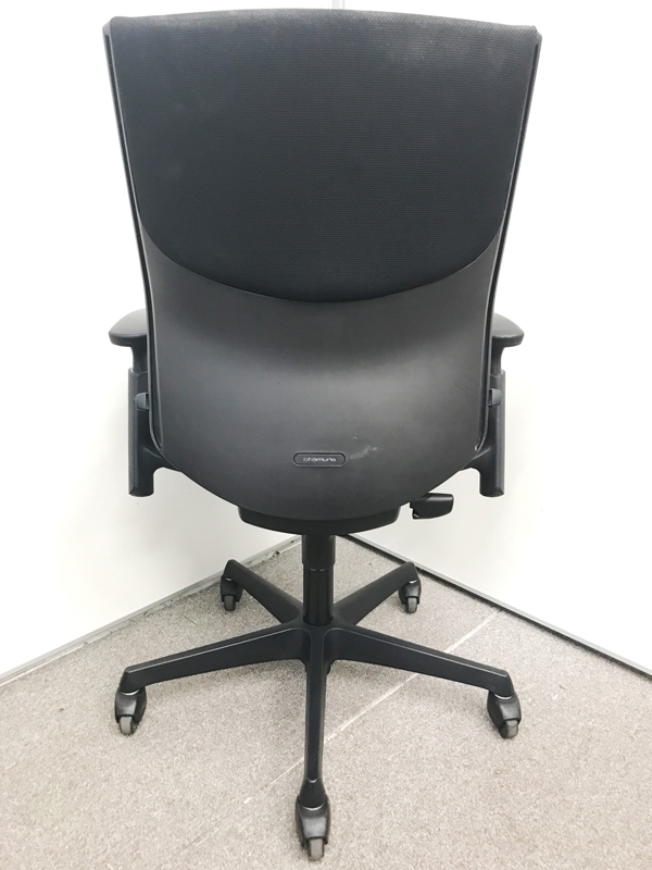 オカムラ エスクード ローバックモデル クッションタイプ デザインアーム付き ブラック×ブラックフレーム ランバーサポート搭載で安定感のある機能面と座り心地