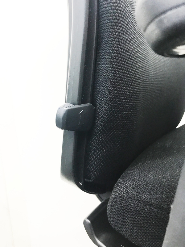 しかも、背もたれ両側のレバーを上下に動かすことによって、ランバーサポートの支点を上下に60mm動かすことができるので、体格に合わせて調整できます。
