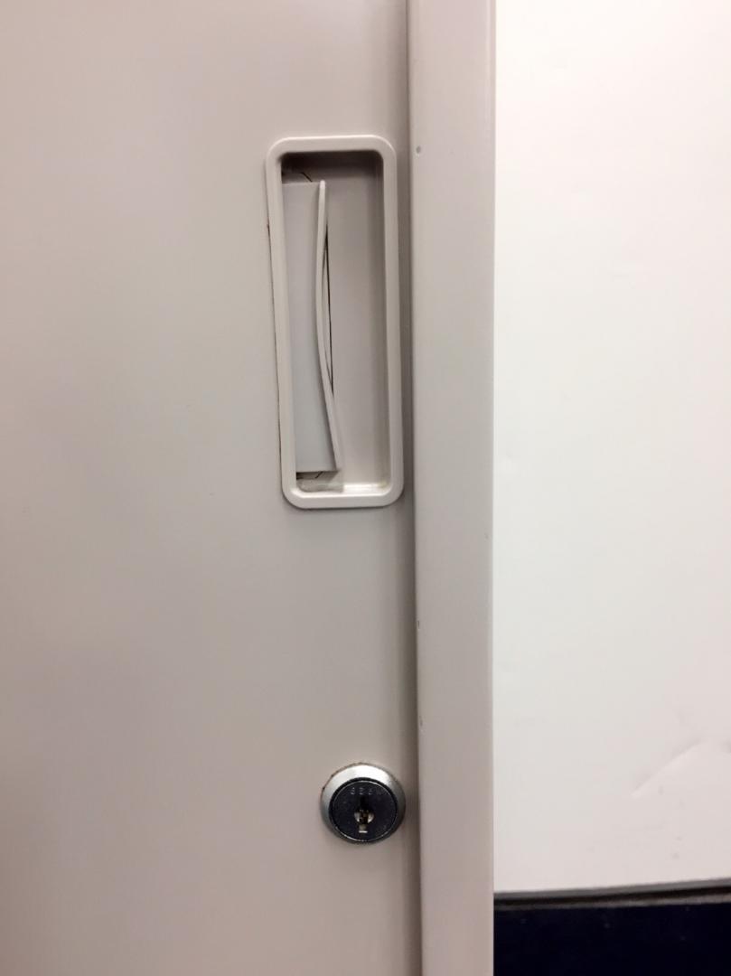 - 壊れている引出の開閉不可、施錠不可、棚板無しといったその書庫の本来の効用を果たすための機能に不具合がある(例、扉、引出の開閉が行えない。)