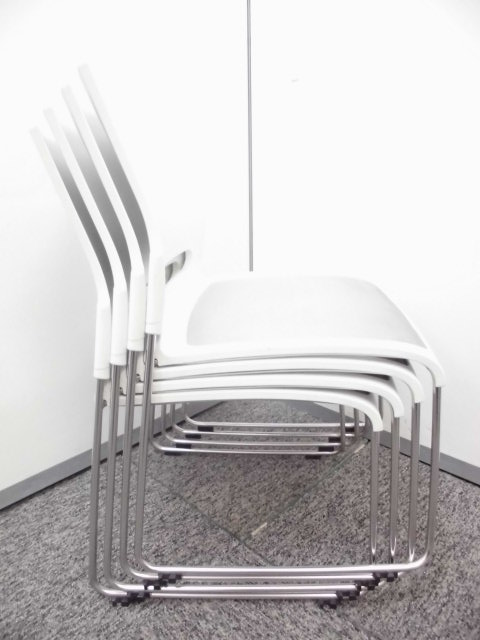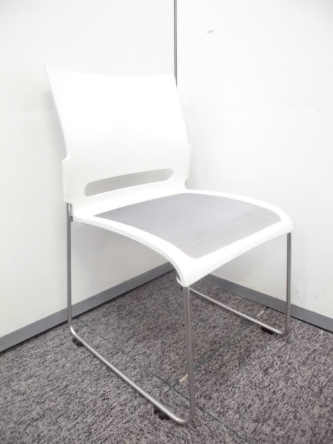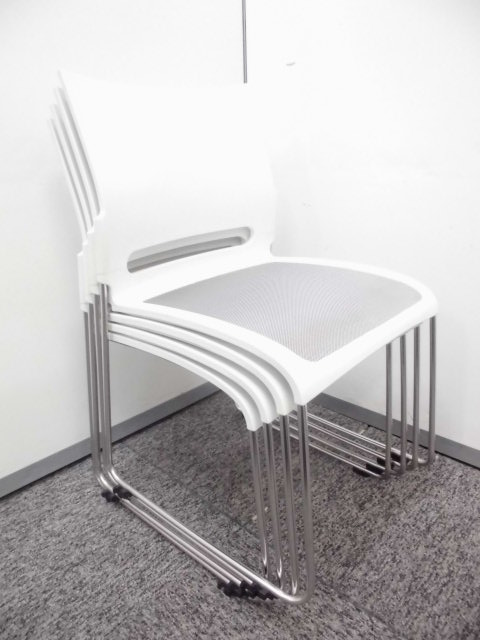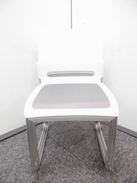 イトーキ製スタッキングチェアで、カラーはホワイト×グレーです。