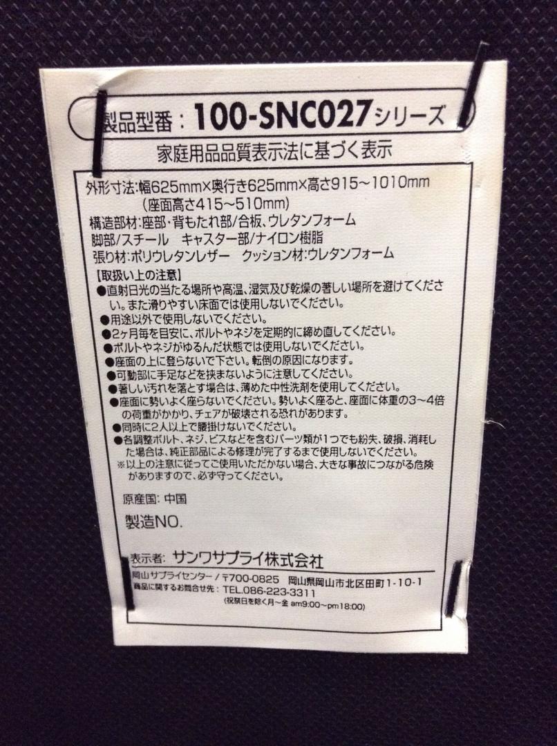 - 不具合多数そのチェアの本来の効用を果たすための機能に不具合ある。(例、オフィスチェアの上下昇降キャスター付きミーティングチェアのキャスター使用不可のような不 具合)