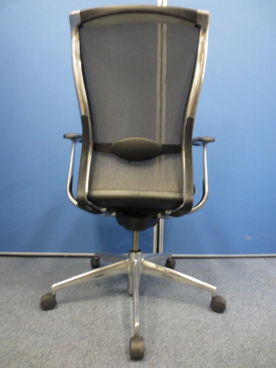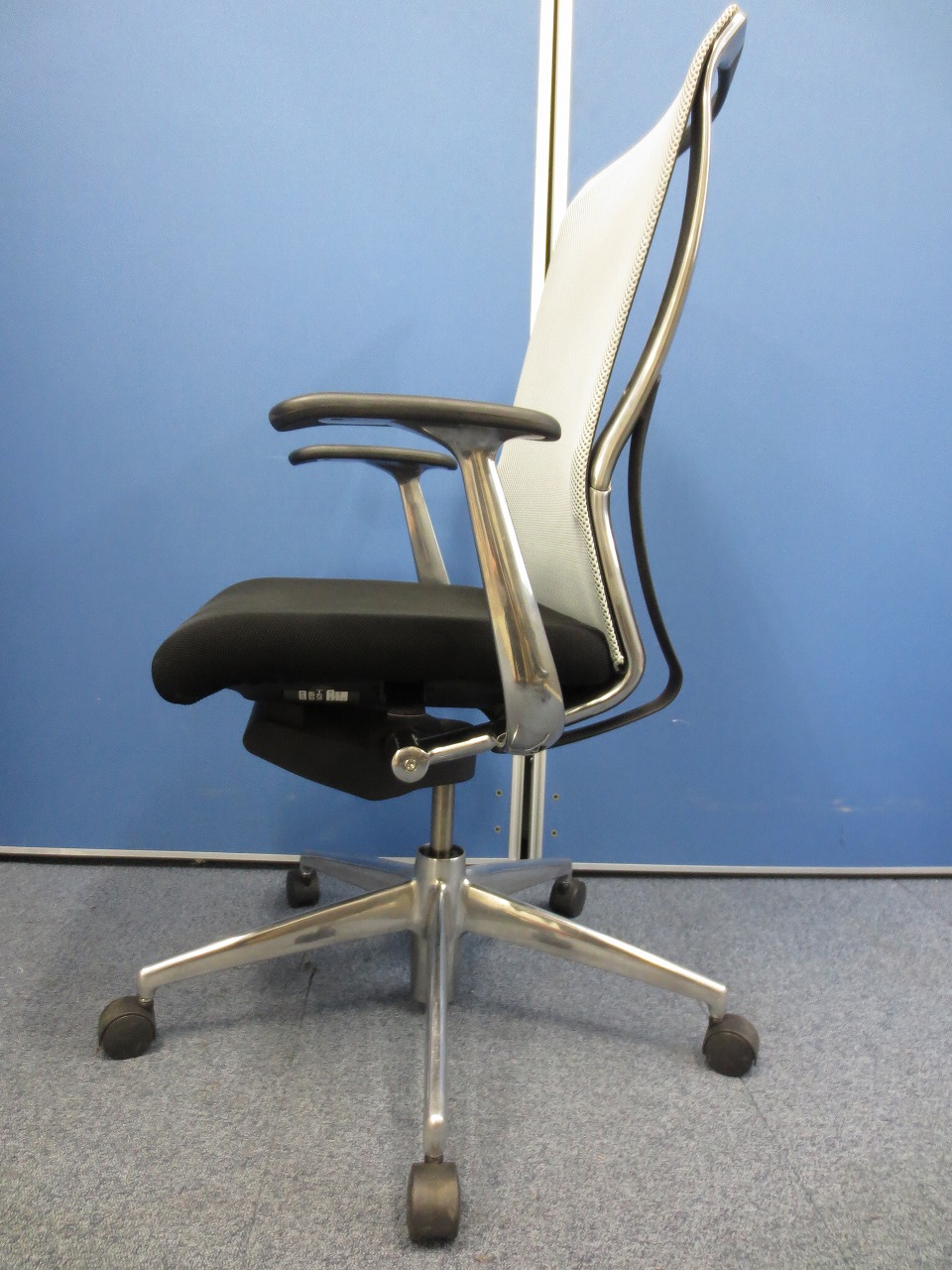 - 大きな曲線を描くフレームと表裏で見え方が変わる特殊メッシュで構成された背もたれ、そして2層構造の技術によって実現できた快適ながらも薄い座面は、先進的でありながらも柔らかさのあるスタイリッシュなデザインを実現しています。