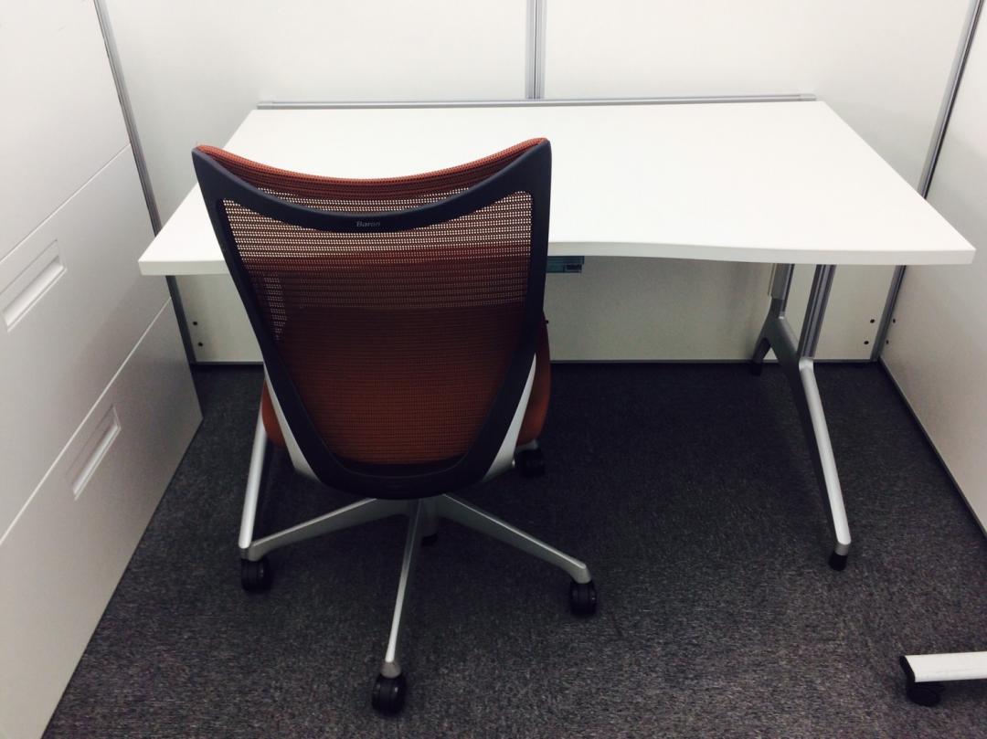チェアはデスクの上や中に入れて保管しております。もちろん試座も可能ですので、お気軽にお申し付けください!