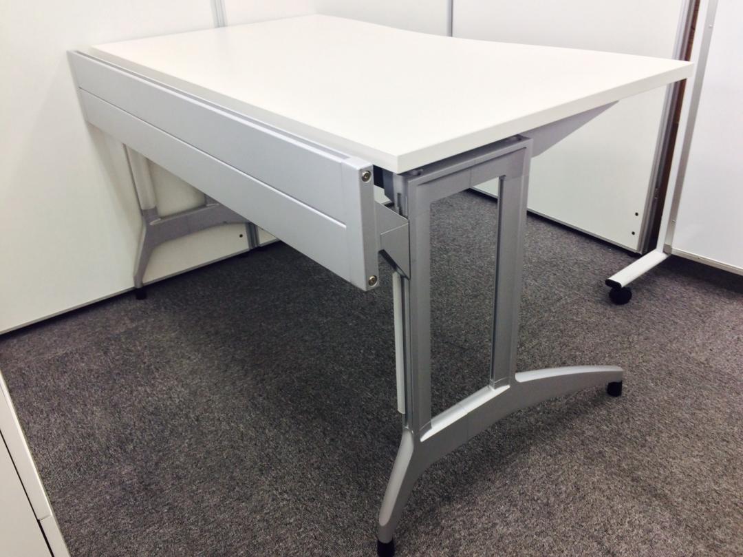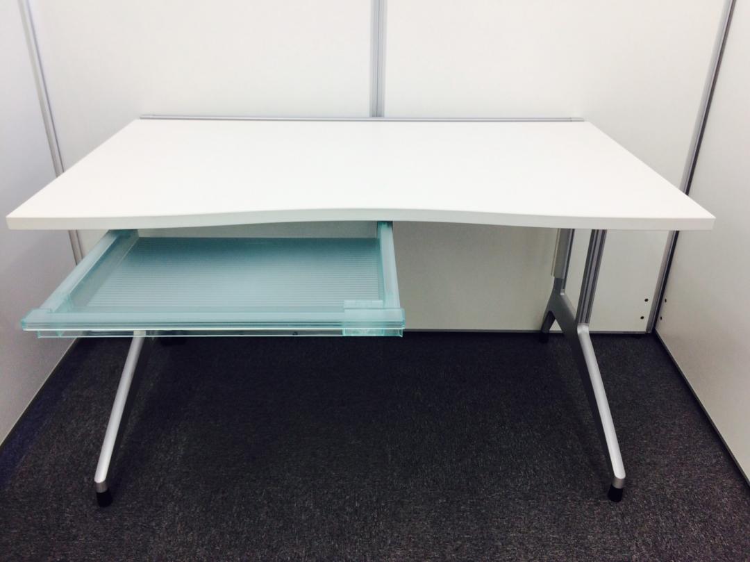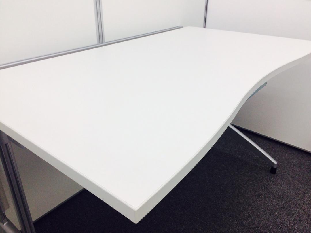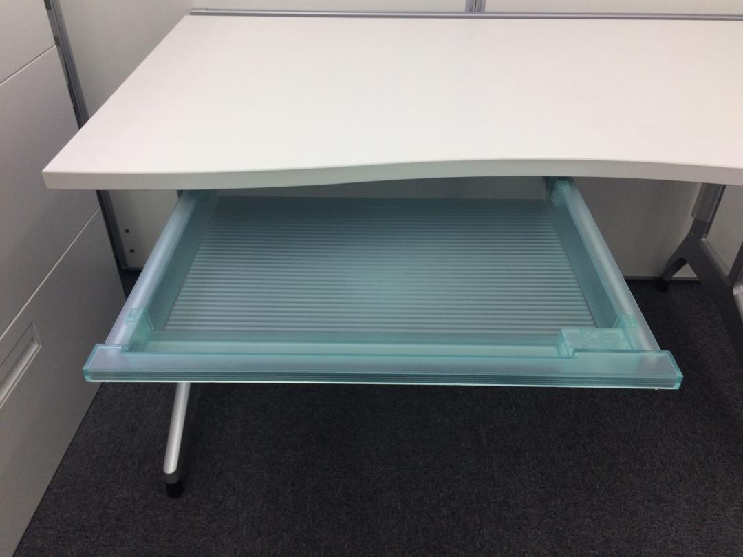 【変型デスク】ホワイトのおシャレ天板 ■クリアな引き出しもおしゃれ■【RP】- 品川・三田店