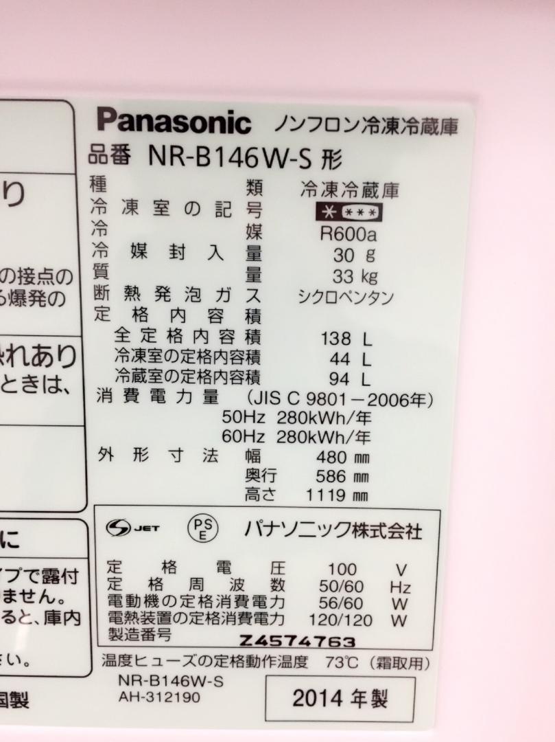 【中古】 NR-B146W-S Panasonic 冷蔵庫 194763