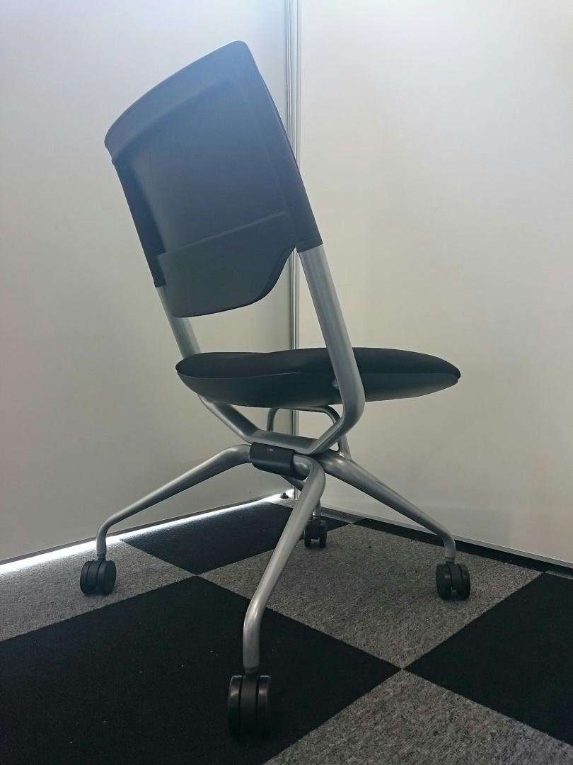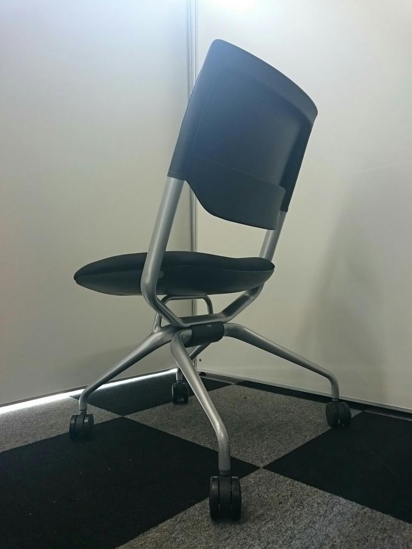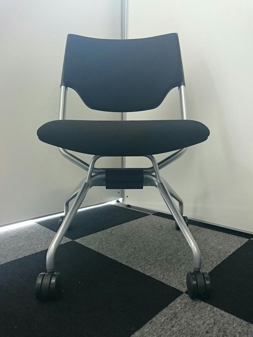 【2016年製 状態良好】座面を畳んで横に並べて収納できるキャスター付きチェア!人気のブラックカラーです!- 在庫数