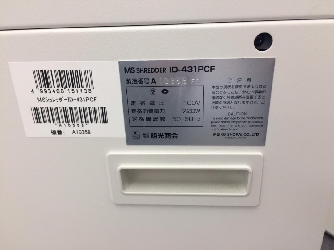 【中古】 MSシリーズ MS-ID431PCF 明光商会 シュレッダー 194800