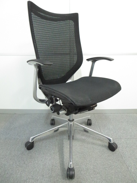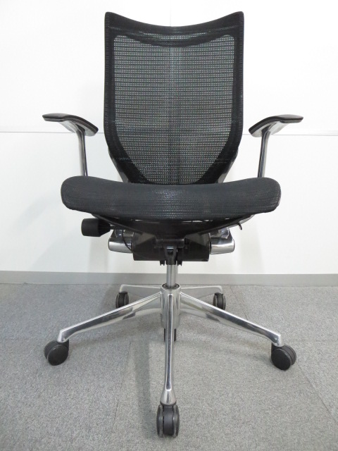 ■オカムラ バロンチェア ブラック(背・座メッシュ) ■デザインアーム付 ポリッシュフレーム ■先進のエルゴノミクスが生み出す快適な座り心地!- 川崎店