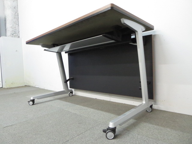 落ち着いた木目調ダークブラウンの天板にアルミ脚を合わせた高級感のあるデザイン。