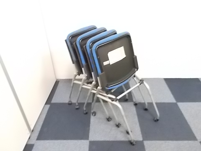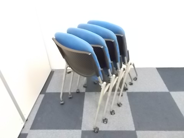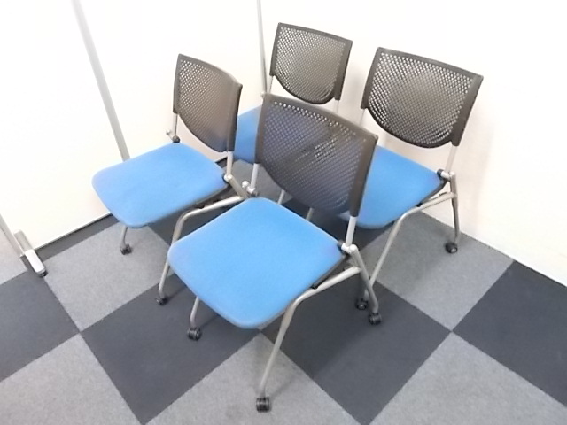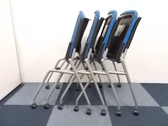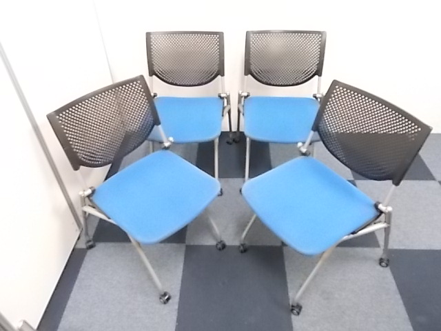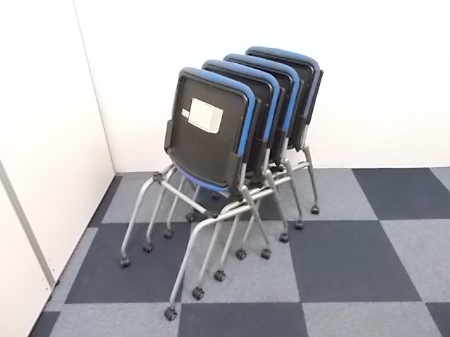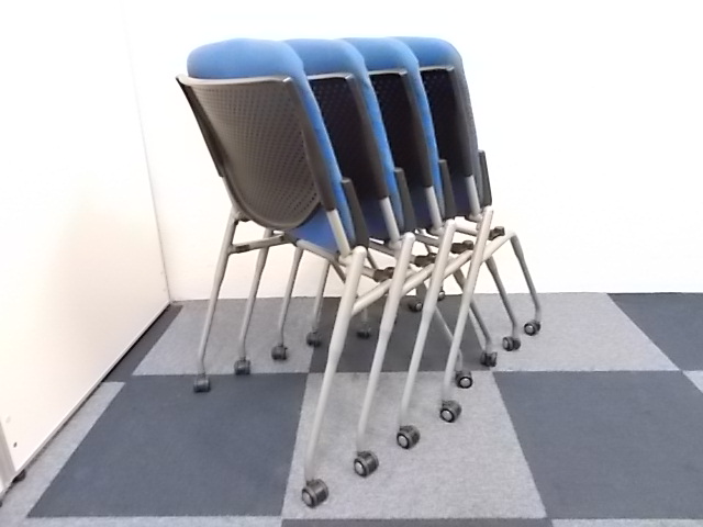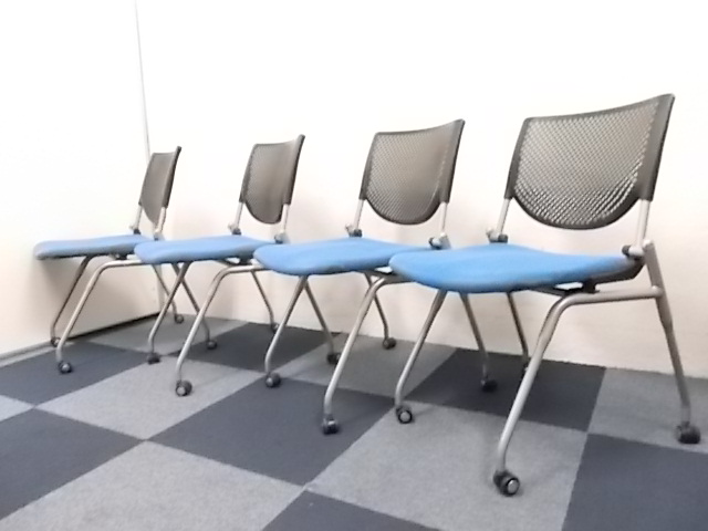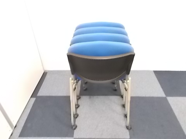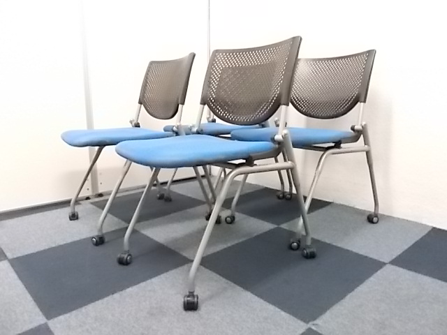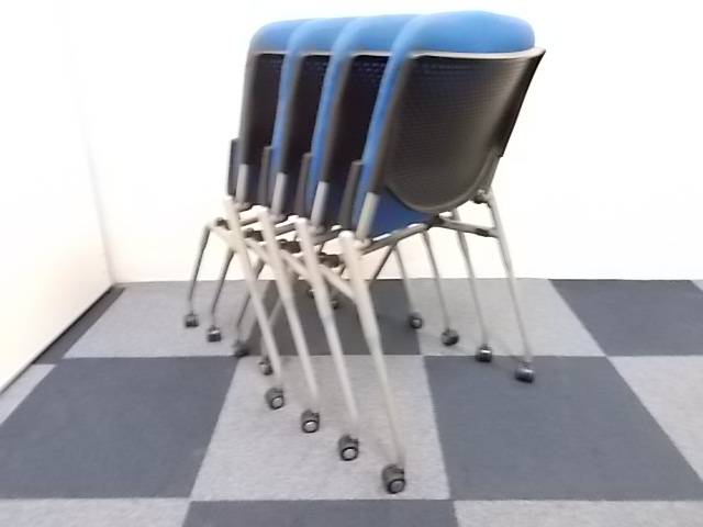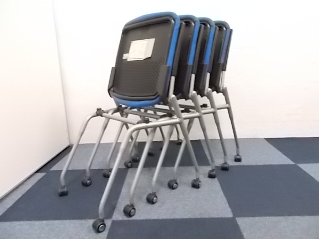 【4脚セット商品】[人気シリーズが入荷!!]岡村製作所製 ネスティングチェア ブルー■キャスター付で移動もらくらく!!会議用チェアとしておすすめ商品!!!在庫がある店舗一覧