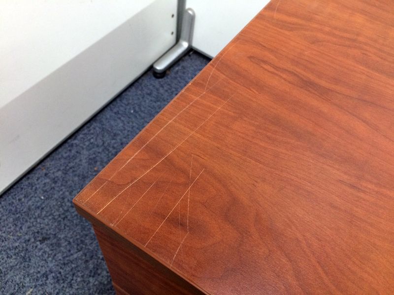 - 目立つ箇所あり傷・凹みが多数、深い傷・凹みが一部ある。(例、天板、正面、背後、サイド部分にある。)